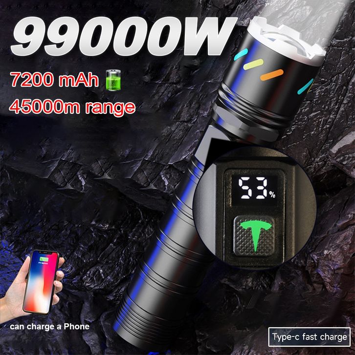 Senter LED Super Terang Berdaya TinggiSente Jarak Jauh Anti Air Senter LED 20000 Lumens Original USB C Rechargeable Zoom