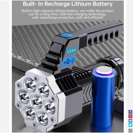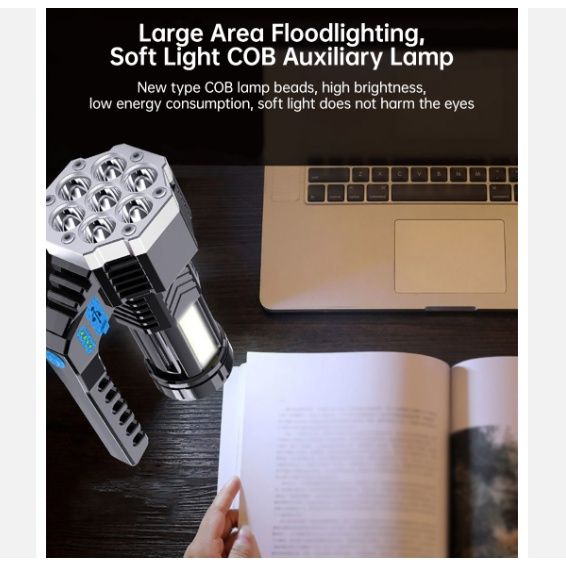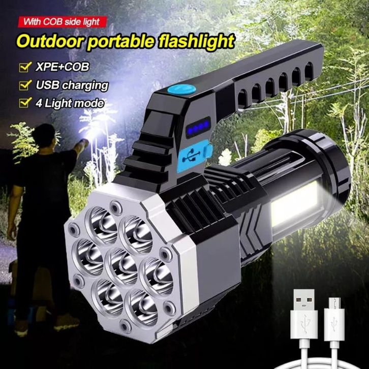 80W 7LED Senter Powerfull Cob Side Lig8ht lampu suluh Outdoor Lighting Bahan ABS Torch Rechargeable Senter Power PRODUCT