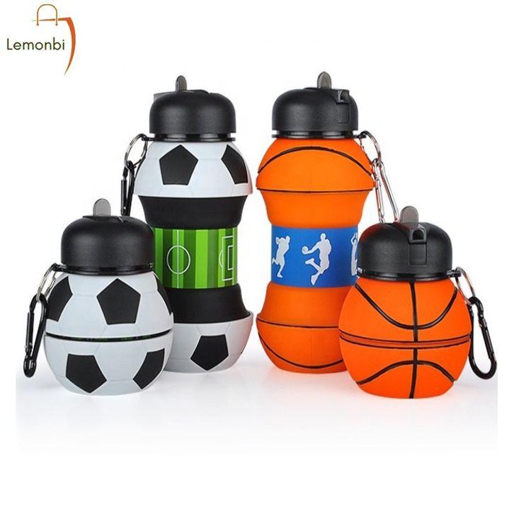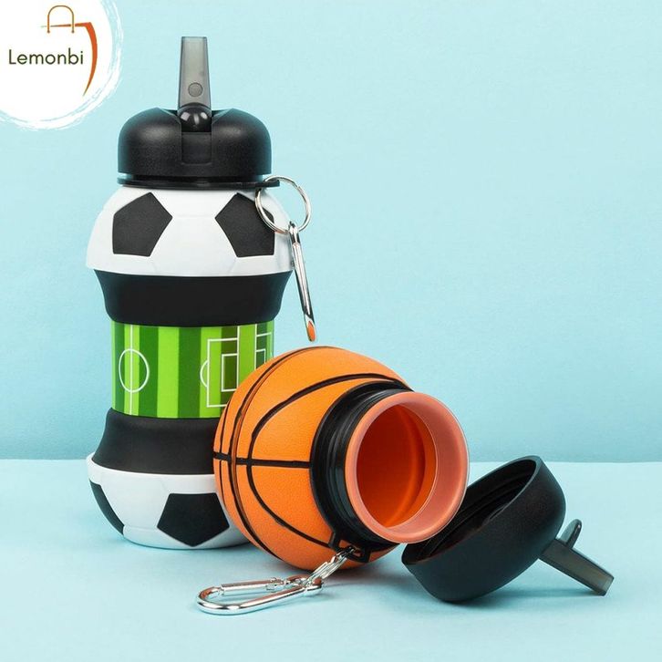Botol Minum Anak Lipat Silikon Sedotan Tumbler Minimalis Karakter Bola & Basket