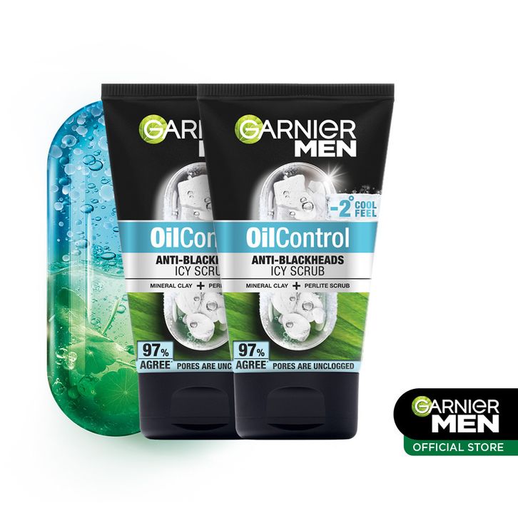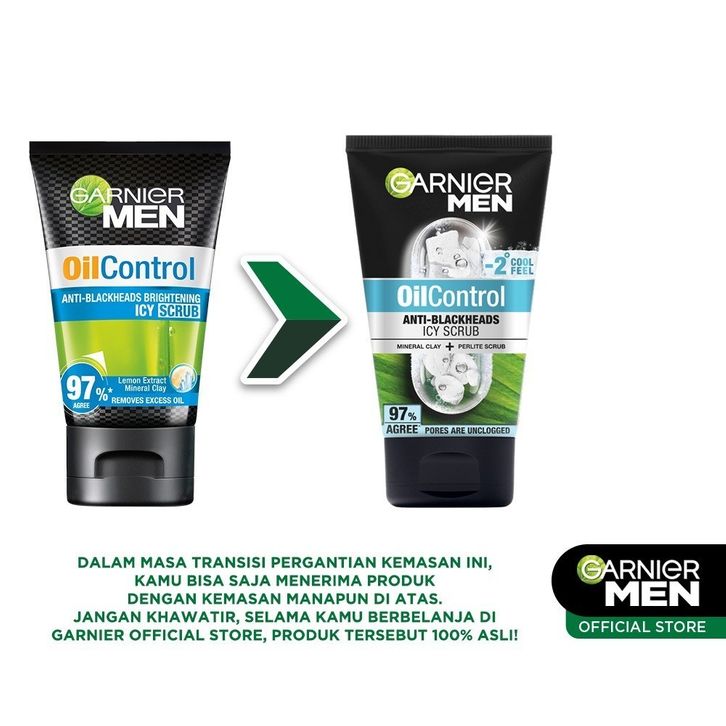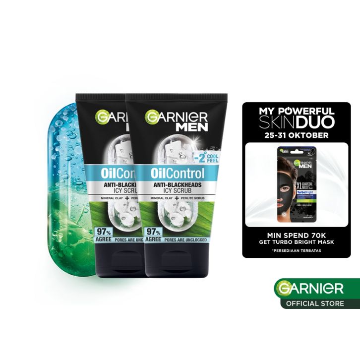 (PAKET HEMAT ISI 2) Garnier Men Oil Control Anti Blackheads Brightening Icy Scrub Facial Cleanser Skin Care - 100ml