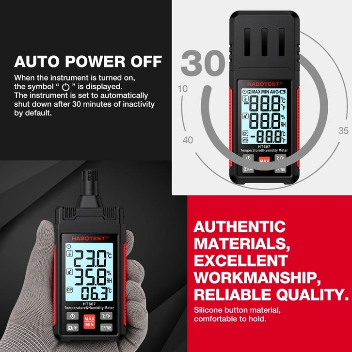 HABOTEST HT607 Meteran Kelembapan Termometer Genggam Meteran Kelembapan Termo-higrometer LCD Psikrometer Penguji Kelemba