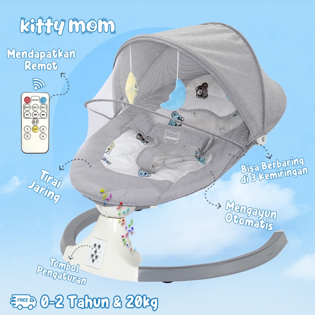 Kursi Goyang Bayi Otomatis Tidur Ayunan Elektrik Baby Swing Listrik Lipat With Lagu & Remote Control