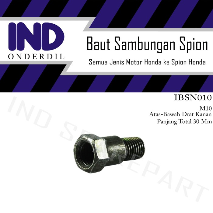 BAUT SAMBUNGAN-PENINGGI SPION M10 PANJANG ULIR 14 ALL HONDA SUPRA/BEAT