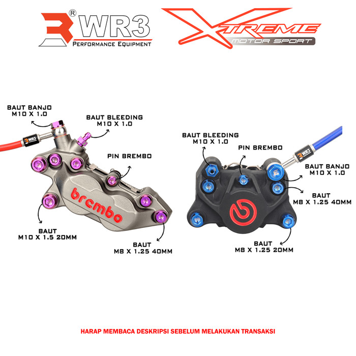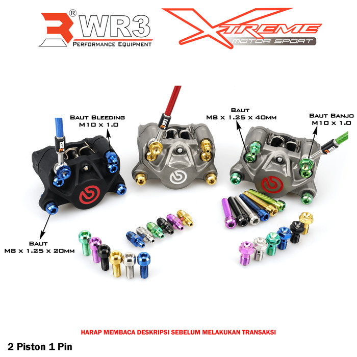 PAKETAN BAUT TITANIUM WR3 SET UNTUK KALIPER BREMBO 4P1P / 2P1P - 2P1P, HITAM