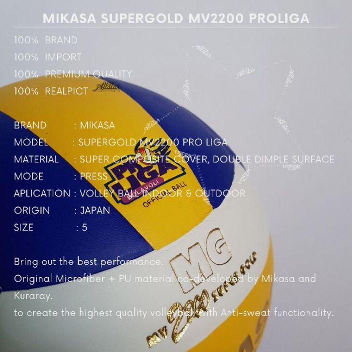 Bola Voli Volly Voly MIKASA PROLIGA SUPERGOLD MV2200 original Import Size 5