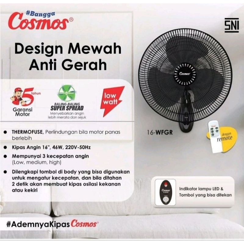 Kipas Angin Dinding Cosmos Remote Control 16WFGR / 16WFCR- Wall Fan Cosmos 16 inch Remote Control16WFGR / 16WFCR Peralat