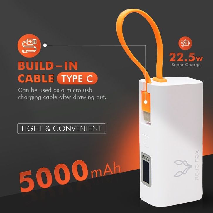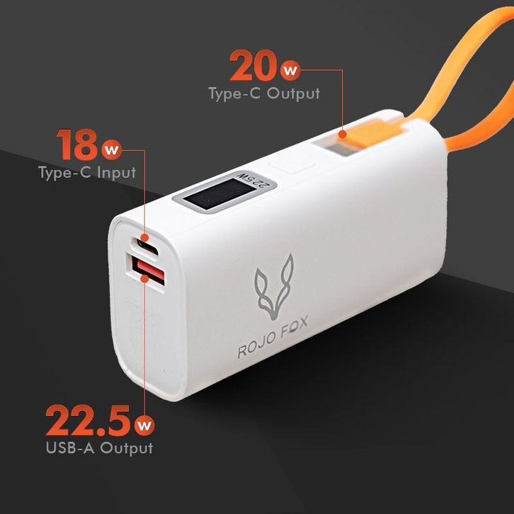 ROJO FOX Powerbank Mini RJ05 Emergency Portable Powerbank 5000mAh | 22.5W & 20W Fast Charging | Dual USB Output | For