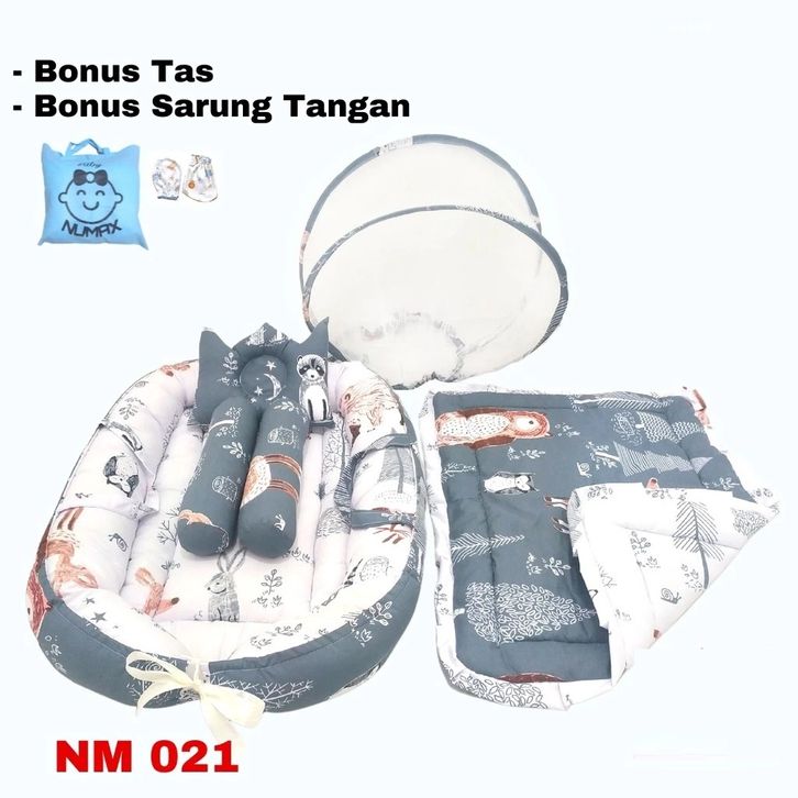 KASUR BAYI LIPAT BERKELAMBU BISA LEPAS / TEMPAT TIDUR BAYI MOTIF ANIMAL / KASUR BAYI PORTABLE / KADO BAYI
