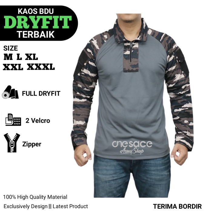 KAOS SPORT KAOS LORENG BDU DRYFIT TACTICAL JERSEY KOMBINASI TERBARU LENGAN PANJANG/KAOS TNI FULL DRY FIT - MALVINAS, M