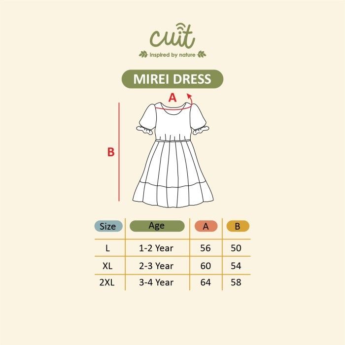 Cuit Mirei Dress Anak Perempuan Tangan Pendek 1-4 Tahun L XL XXL