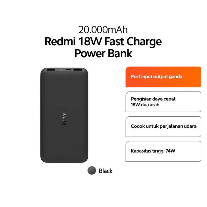POWER BANK XIAOMI REDMI 20000MAH 18W FAST CHARGE DUAL OUTPUT & INPUT POWERBANK 18W XIAOMI ORIGINAL