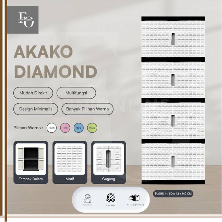 Lemari Plastik Berkualitas 2024 AKAKO Lemari Plastik 4 Susun Jumbo Lemari Jumbo Lemarin Pakaian Anak Lemari Pakaian Baju