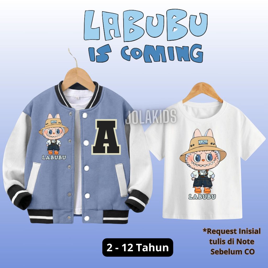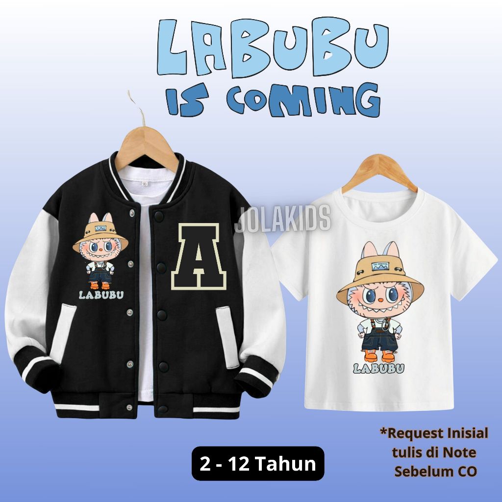 SETELAN JAKET VARSITY ANAK LABUBU BASEBALL INISIAL NAMA USIA 2 - 12 TAHUN LAKI LAKI PEREMPUAN