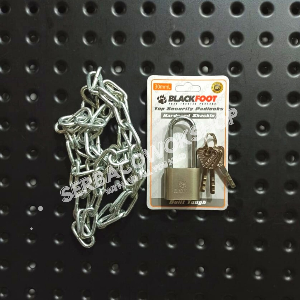 PAKET RANTAI BESI KAPAL 1/8 MM + GEMBOK 30 MM PANJANG BLACKFOOT GEMBOK RANTAI SERBAGUNA TERMURAH