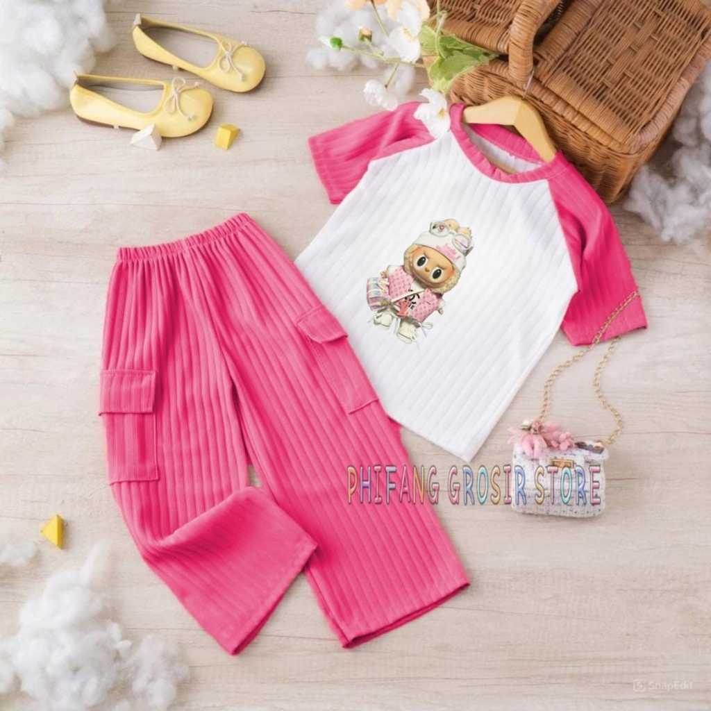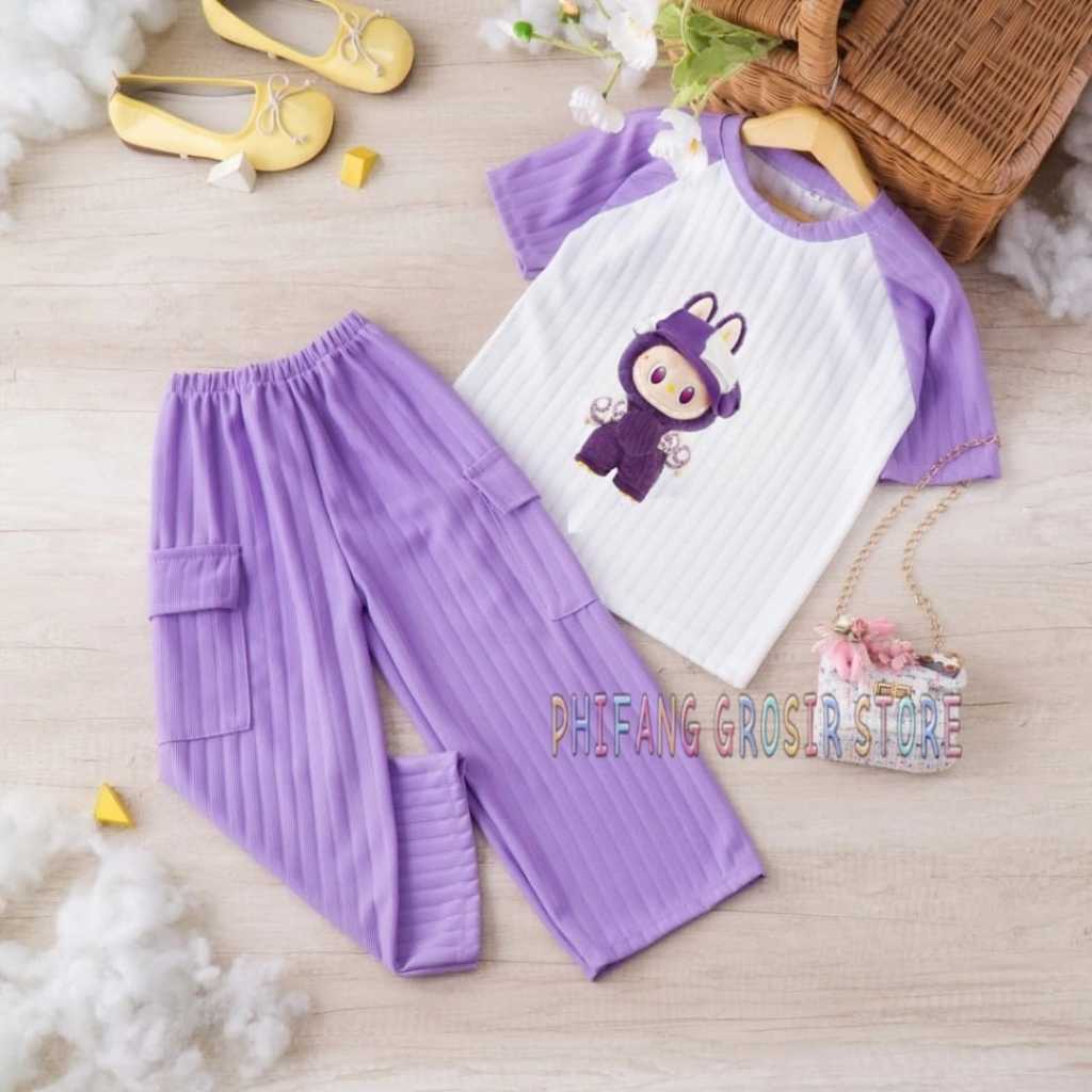 SETELAN KNIT CARGO LABUBU ANAK 1-10 TAHUN/SETELAN BAJU ANAK