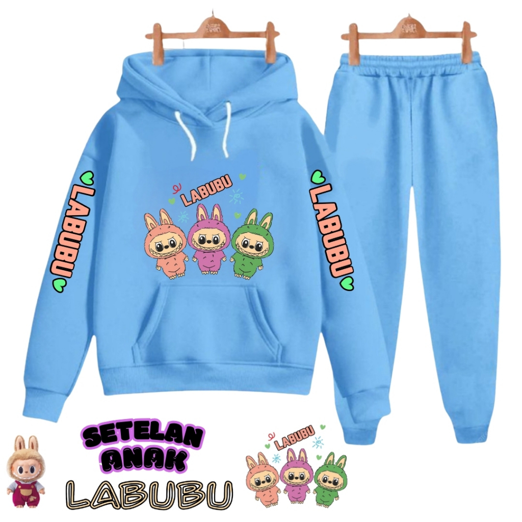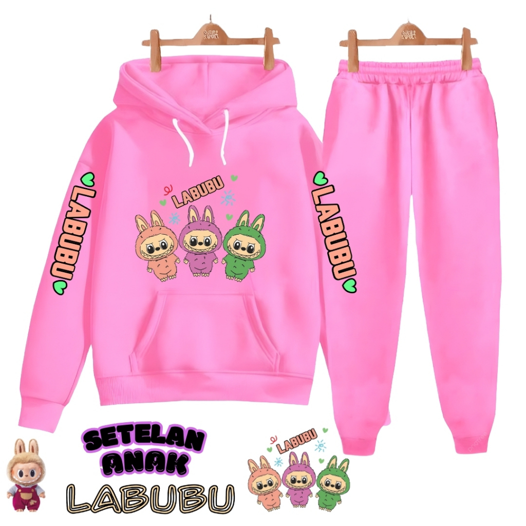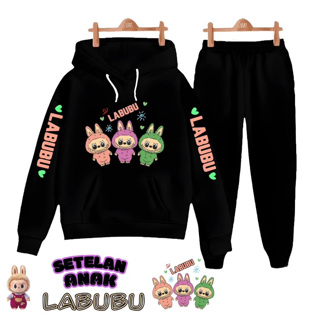 SETELAN SWEATER ANAK MOTIF MONSTER LABUBU FULL PRINT LENGAN DAN BODY UNTUK USIA 3-12 TAHUN