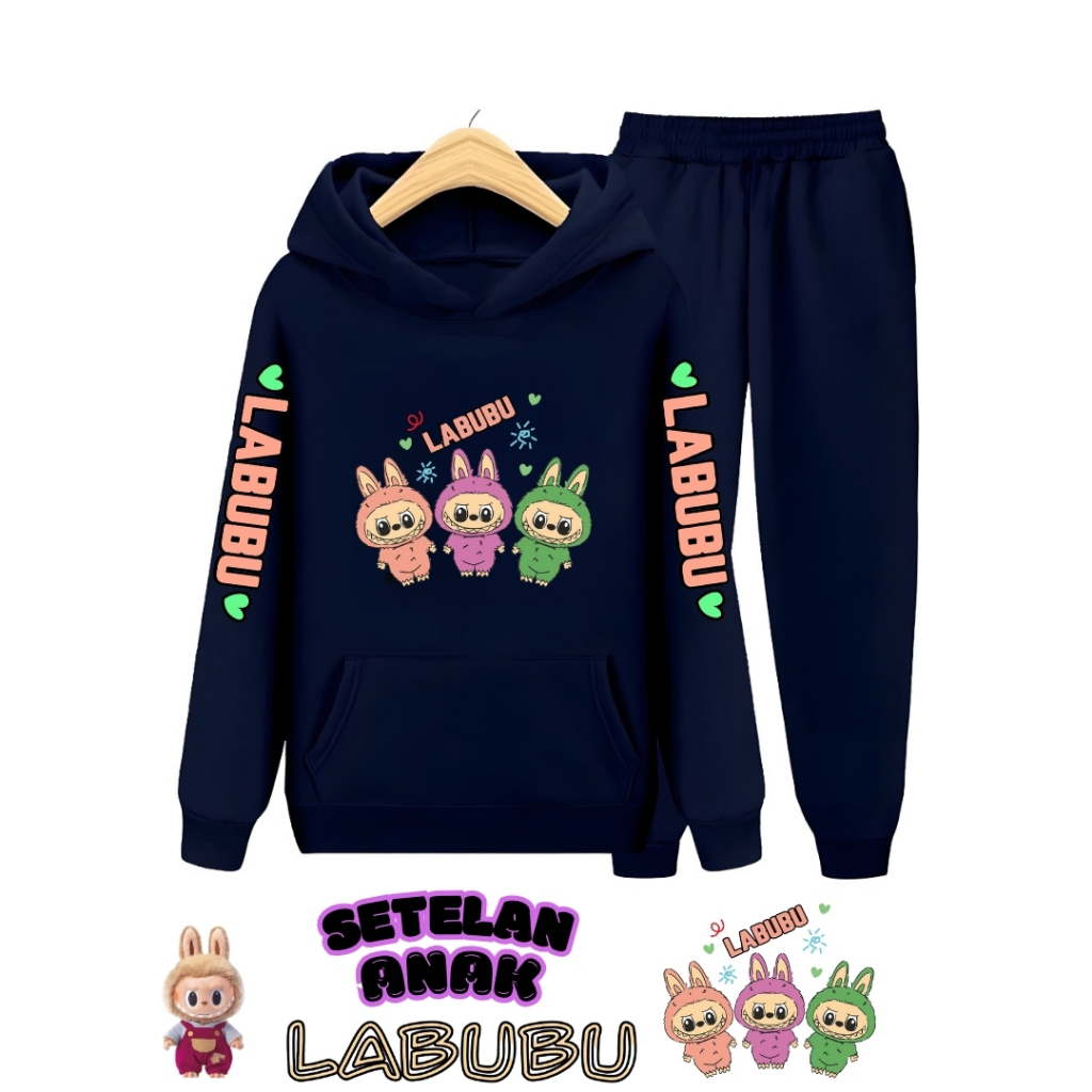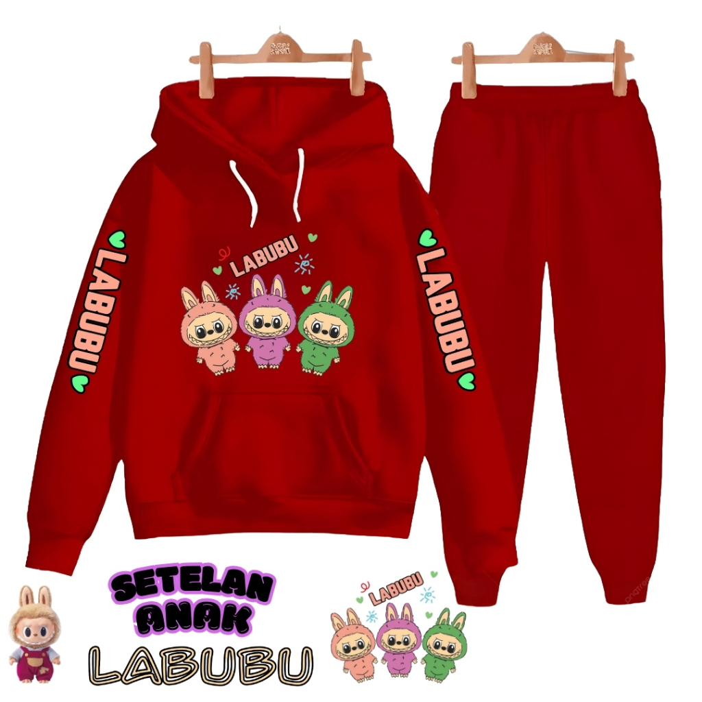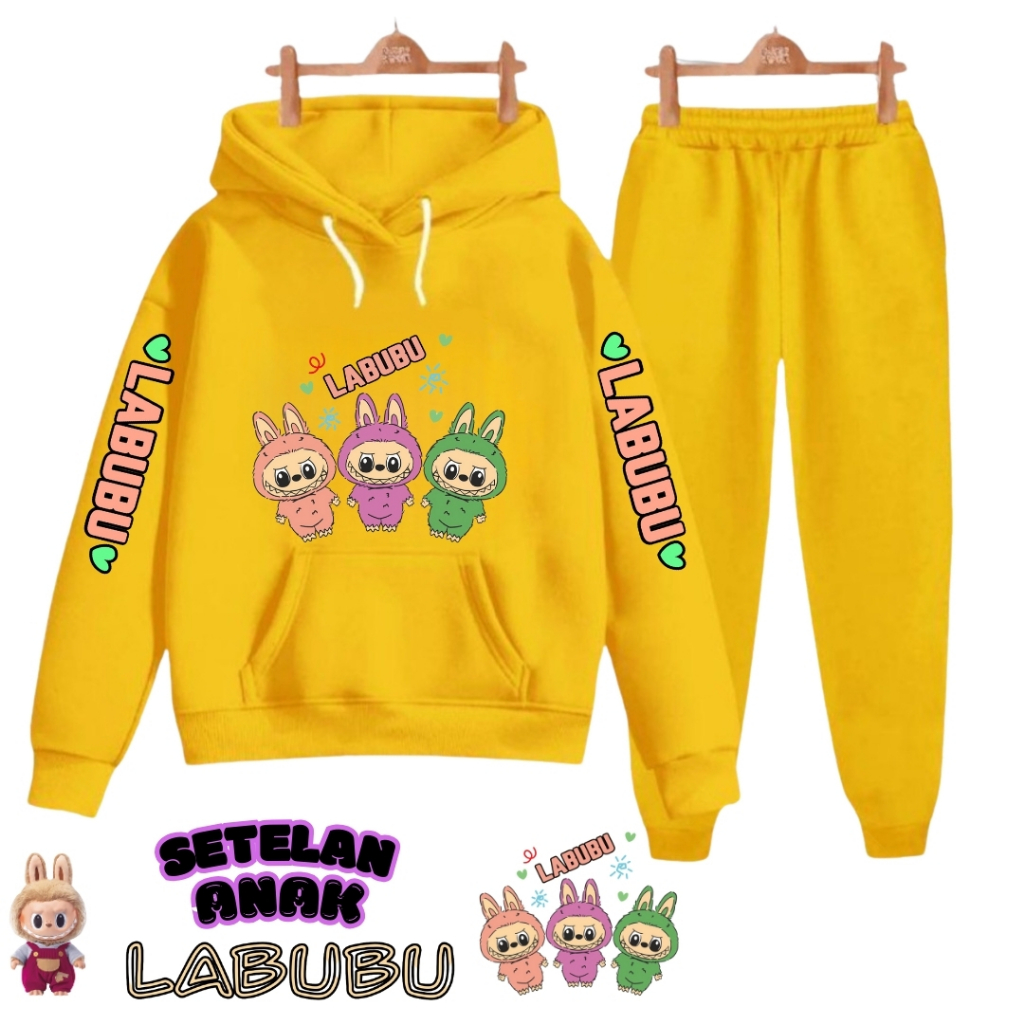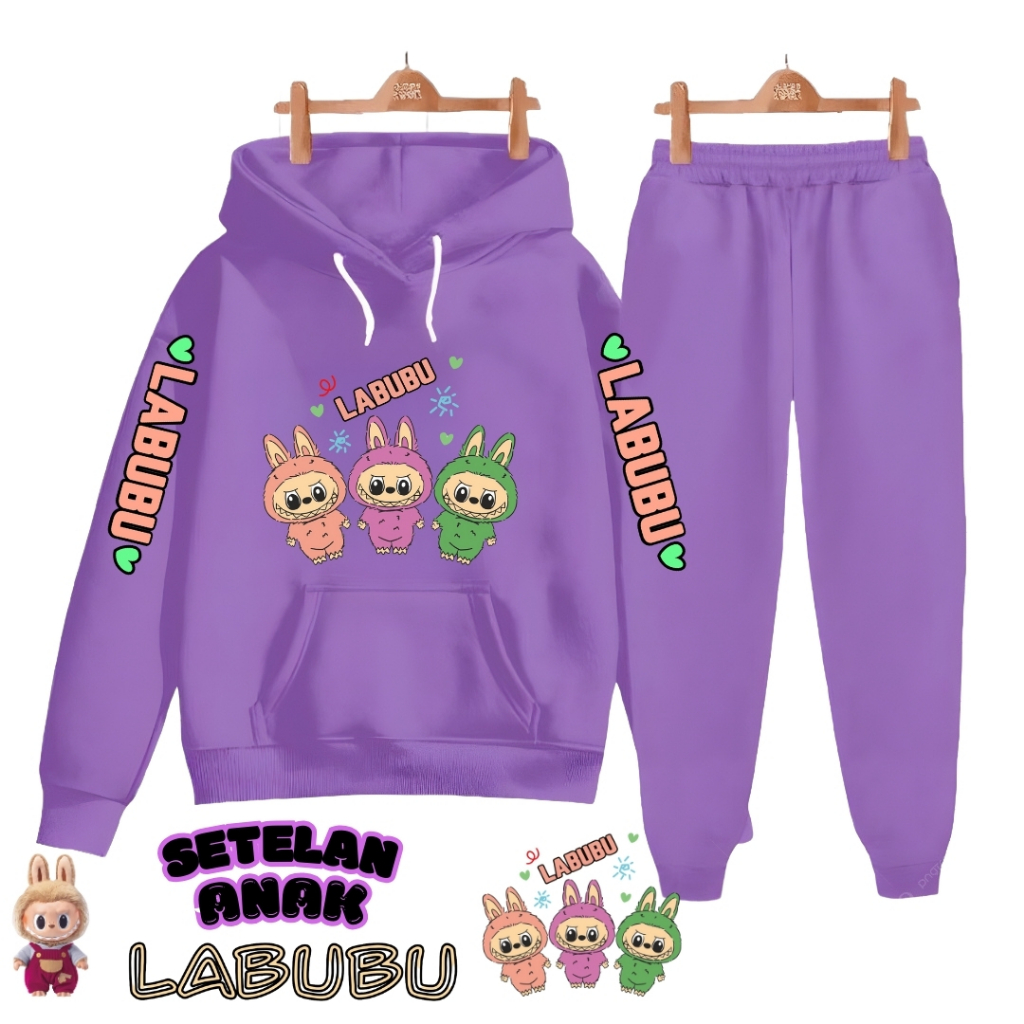 SETELAN SWEATER ANAK MOTIF MONSTER LABUBU FULL PRINT LENGAN DAN BODY UNTUK USIA 3-12 TAHUN