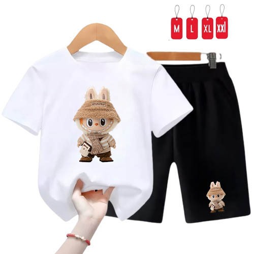 SETELAN ANAK LABUBU MACARON 2-10 THN / STELAN KAOS ANAK-ANAK / BAJU ANAK CELANA PENDEK