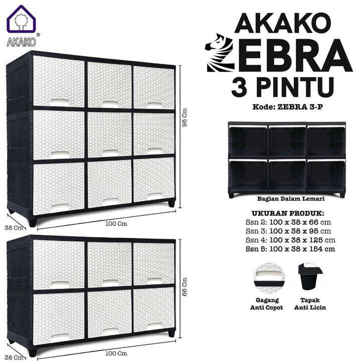Lemari Pakaian Plastik Lemari Tv Minimalis Modern AKAKO ZEBRA Lemari 3 Pintu 2 3 Susun Lemari Laci 6 9 Pintu Murah Kuat