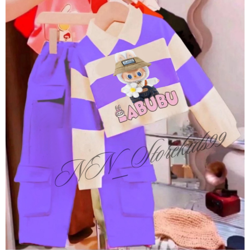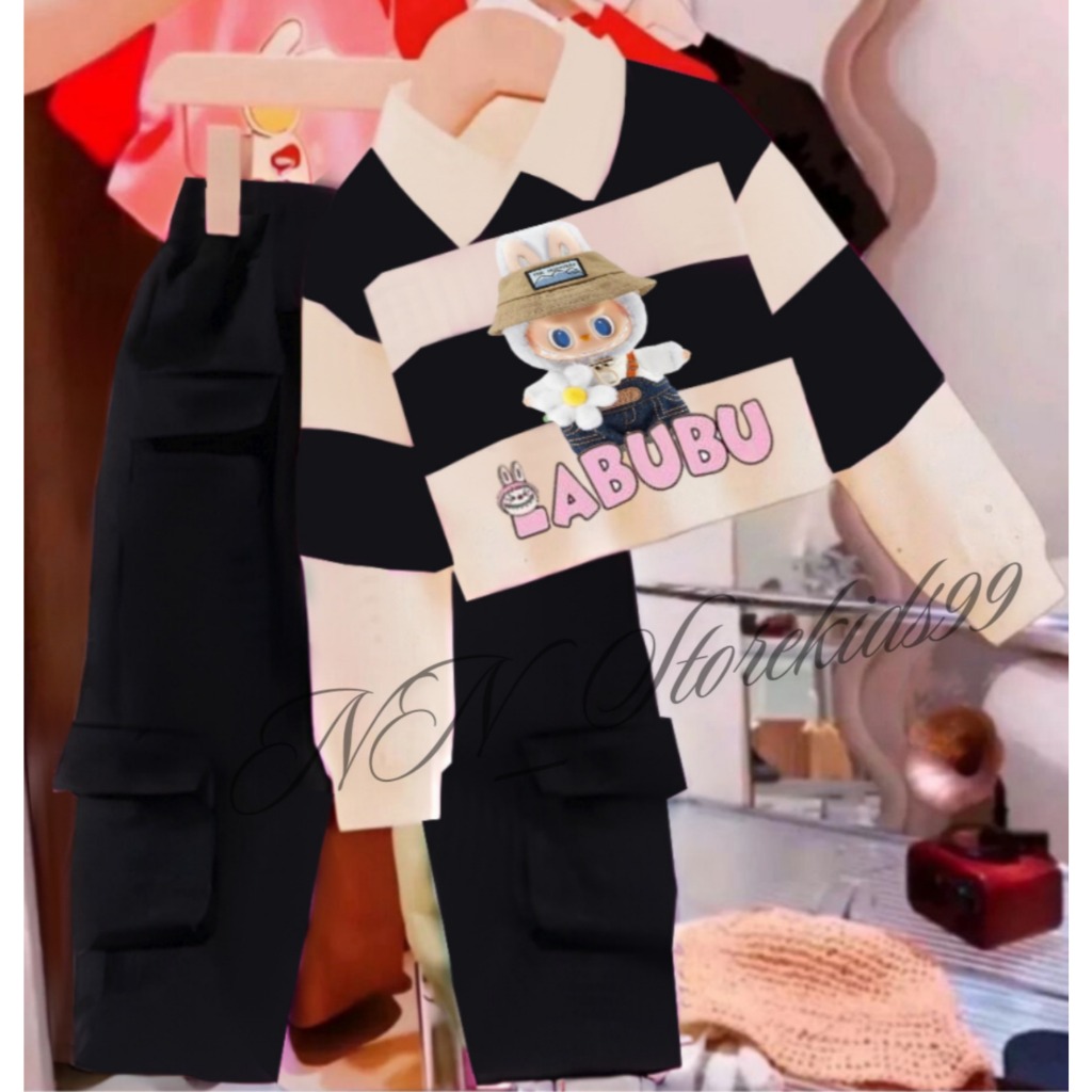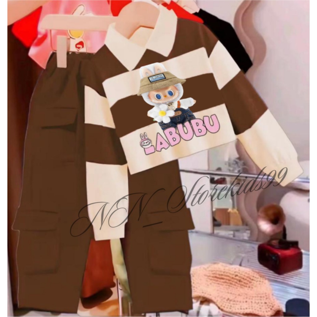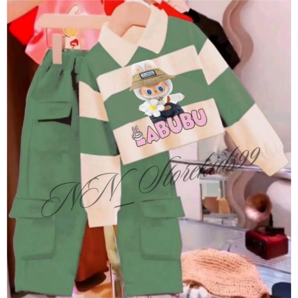 SETELAN ANAK PEREMPAUAN MOTIF LABUBU/ SWEATER ANAK CELANA KARGA SALUR KERAH 1-12 TAHUN