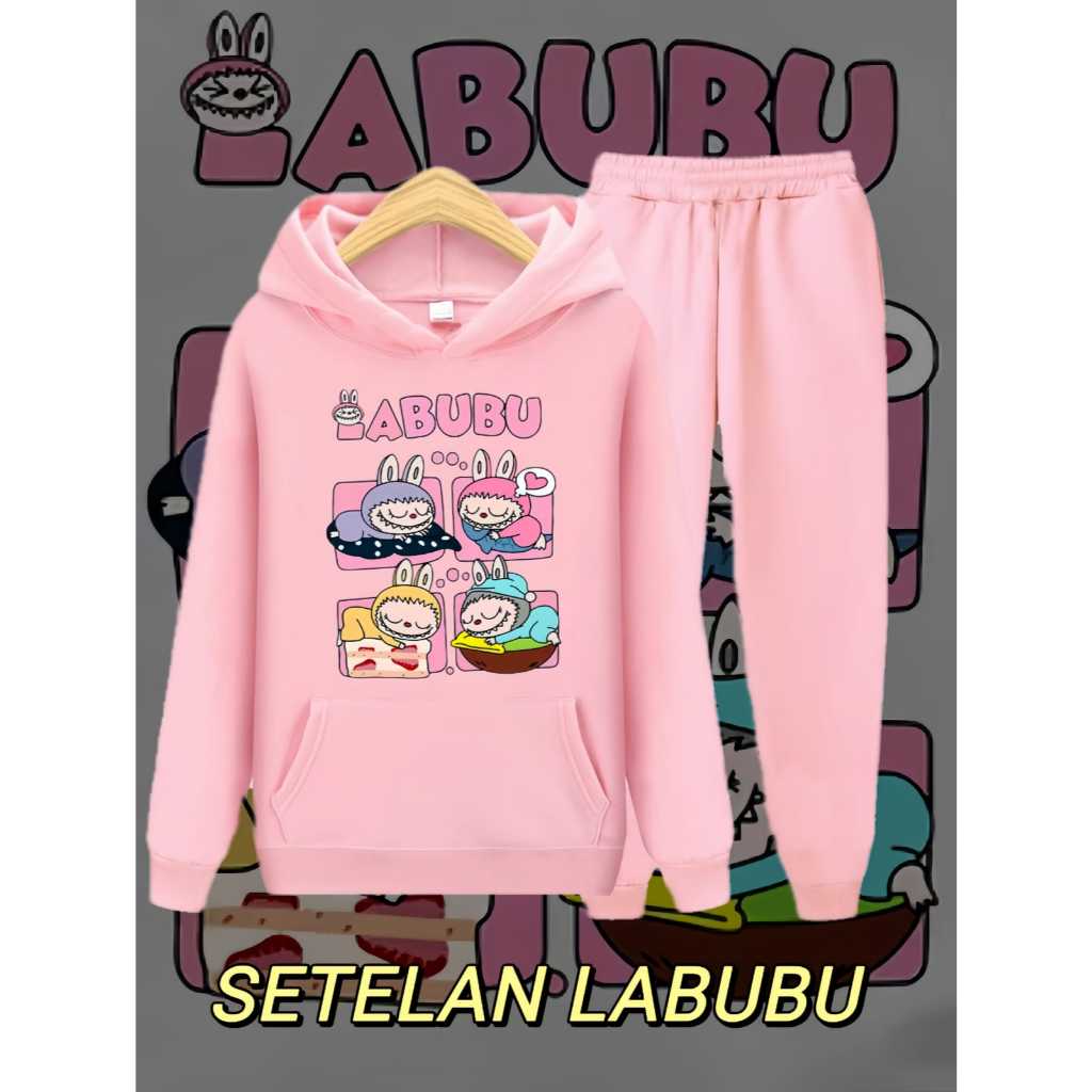 SETELAN HOODIE MOTIF LABUBU GRUP ANAK
