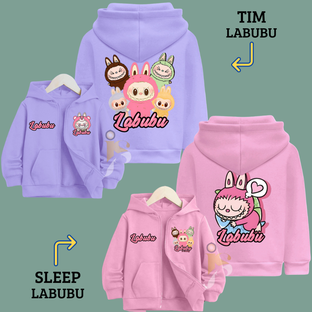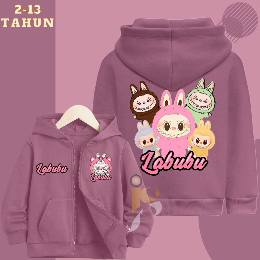 SETELAN JAKET LABUBU ANAK PEREMPUAN USIA 2 3 4 5 6 7 8 9 10 11 12 13 TAHUN JACKET RESLETING ANAK CEWEK COWOK