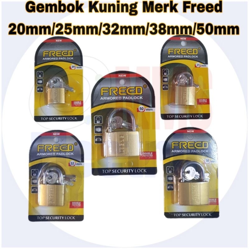 GEMBOK KUNING 20MM/25MM/32MM/38MM/50MM MERK FREED