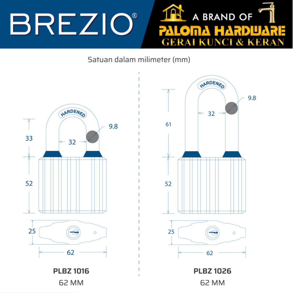 GEMBOK BREZIO GEMBOK PAGAR PADLOCK HITAM BLACK ROCK PLBZ 10 KUNCI PINTU 38 50 62 75 MM ANTI MALING