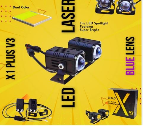 SENLO X1 PLUS V3 BLUELENS LAMPU LED MINI LASER PROJIE 1 MATA MOTOR MOBIL - KUNING PUTIH X1
