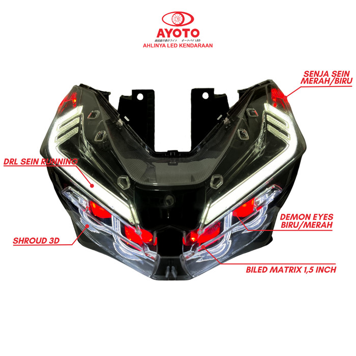 FULL SET HEADLAMP VARIO NEW 125/150 AYOTO 4 BILED MATRIX 90WATT WELCOME LIGHT SEIN RUNNING PLUG AND PLAY PREMIUM PRODUK - DEMON EYES BLUE