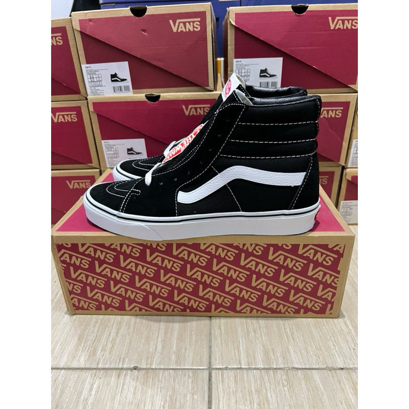 VANS SK8 HI BLACK WHITE BNIB RESMI NAVYA READY SIZE 37-44