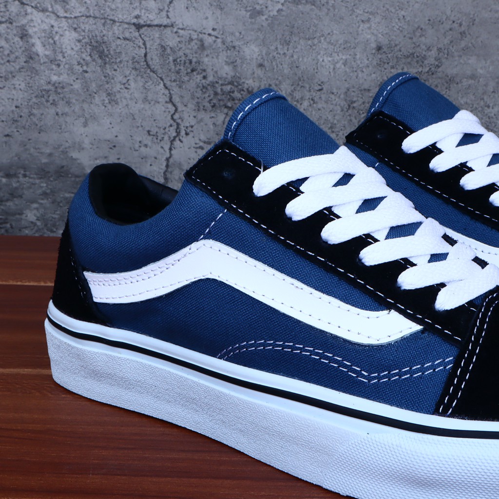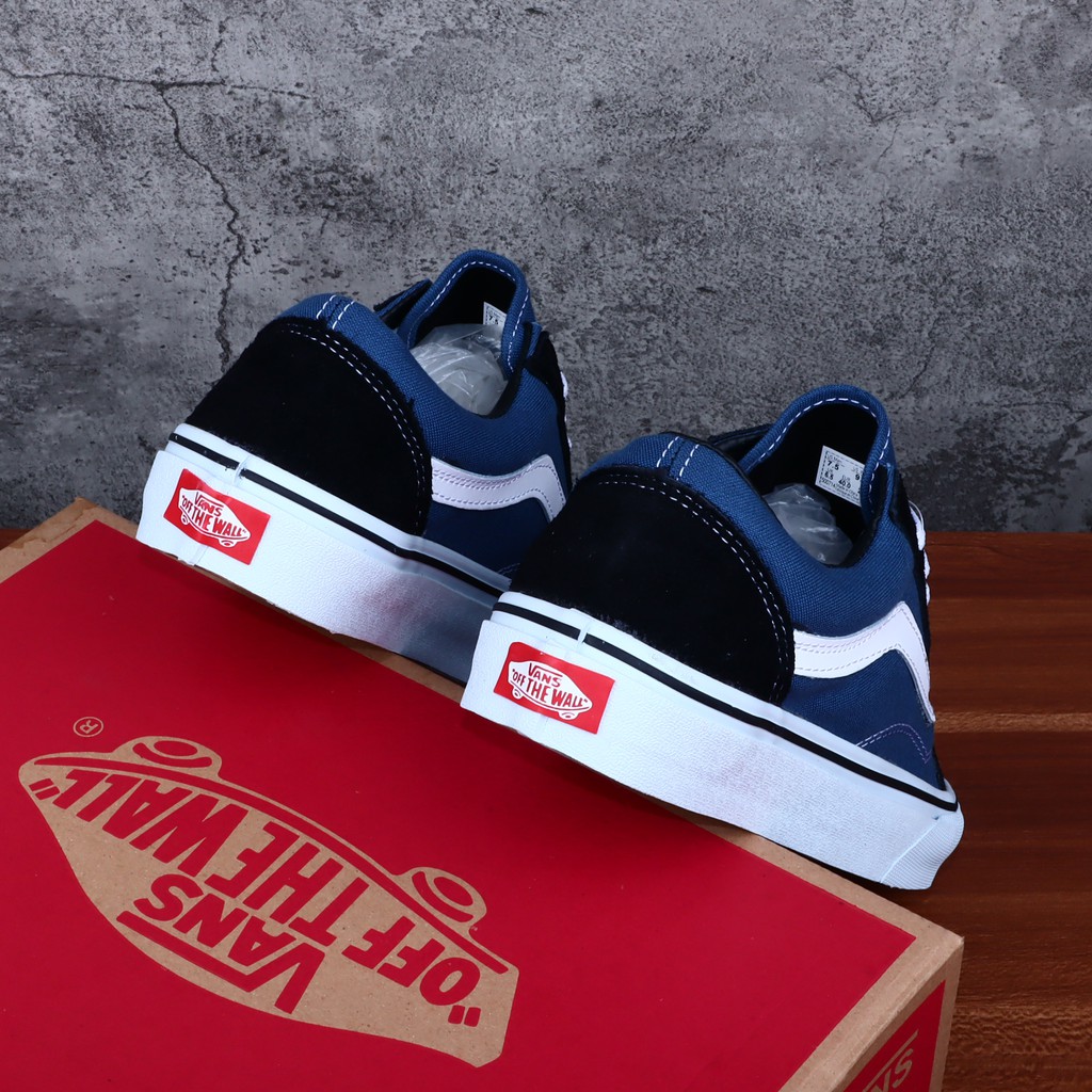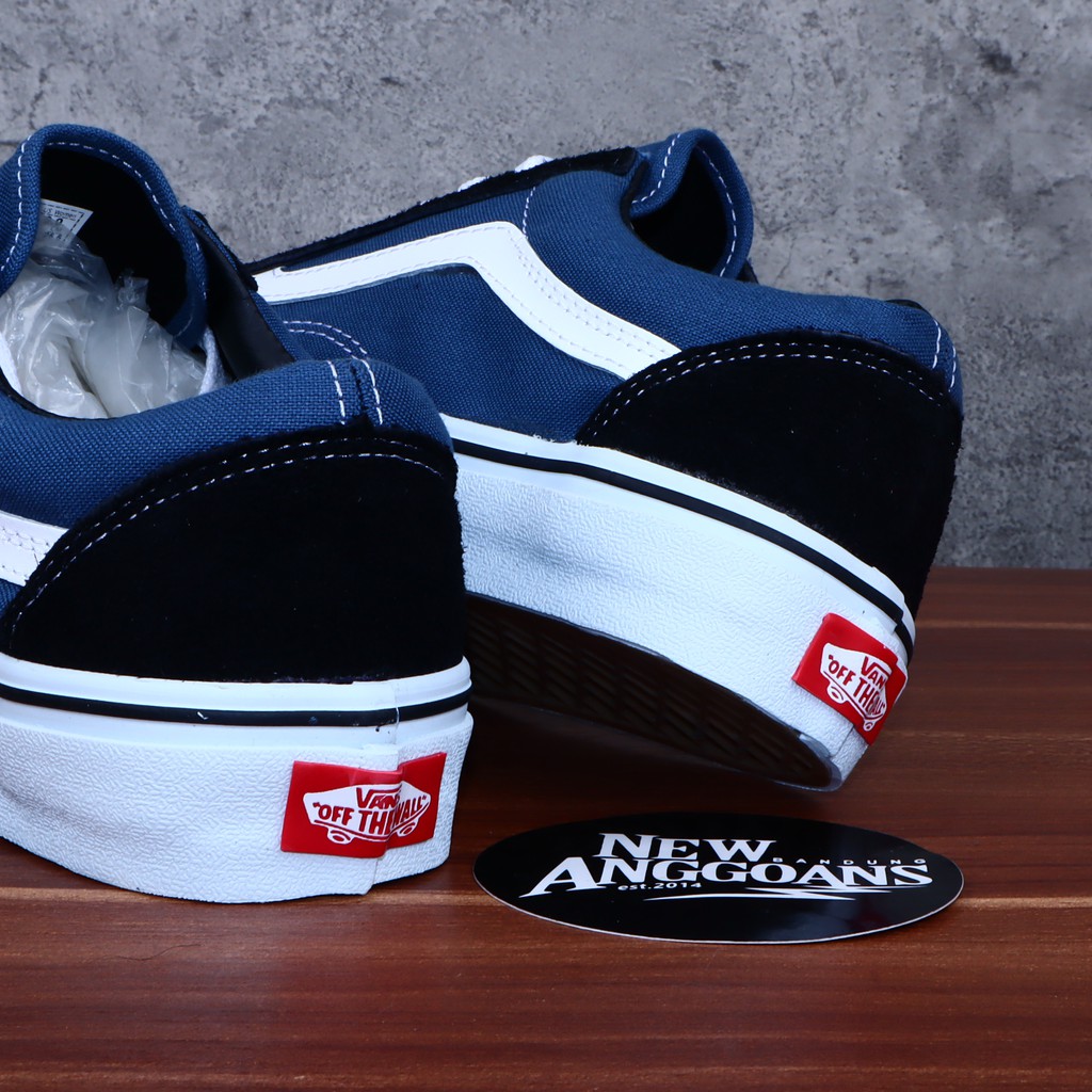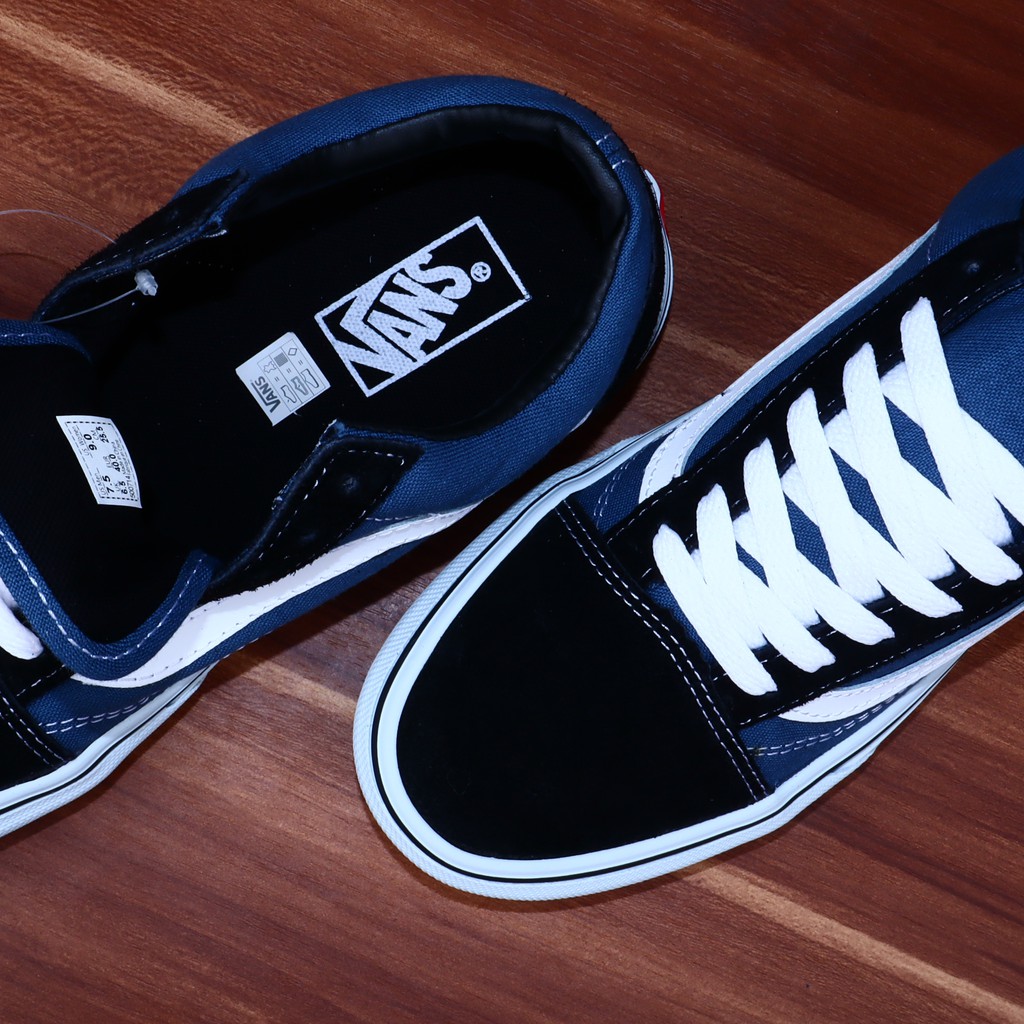SEPATU VANS OLDSKOOL BLACK DRESS BLUE NAVY WHITE HITAM BIRU DONGKER PUTIH - BNIB OLD SKOOL