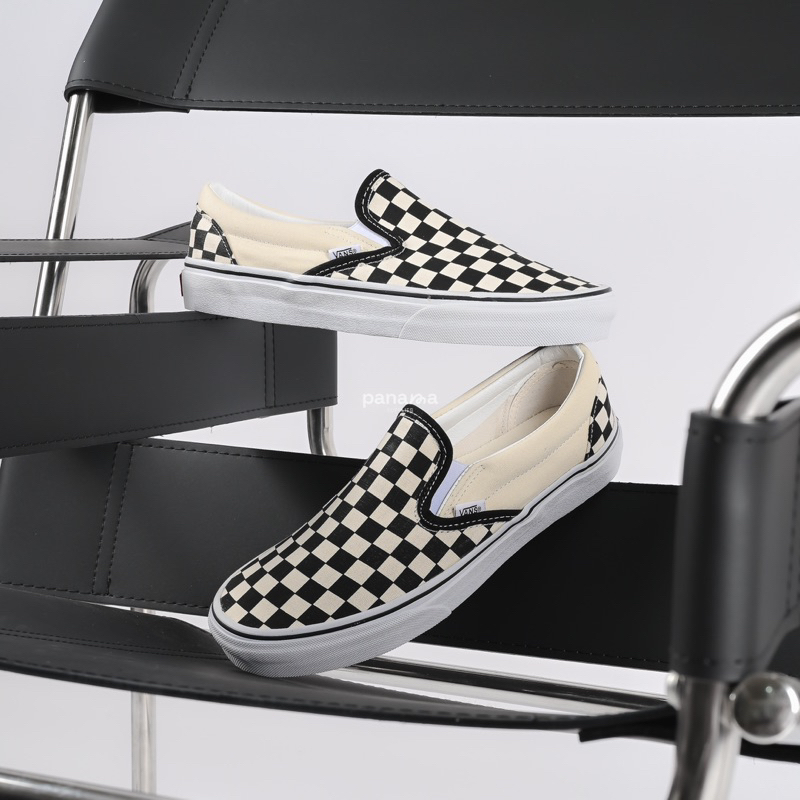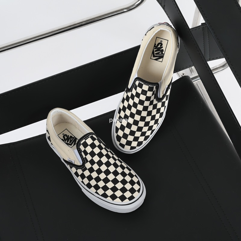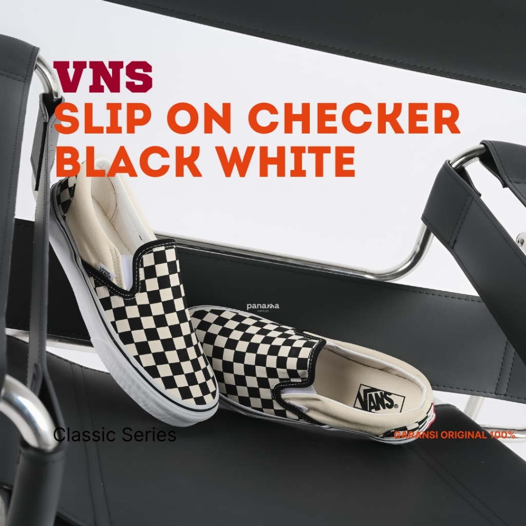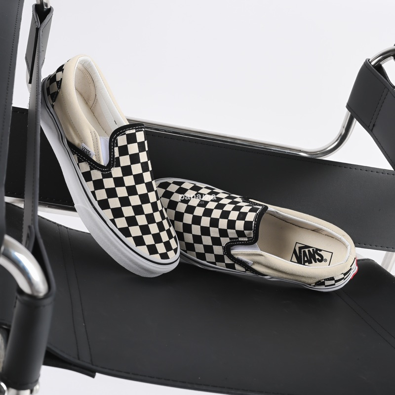 VANS SLIP ON CHECKERBOARD BW ORIGINAL 100 PERSEN GLOBAL BLACK WHITE
