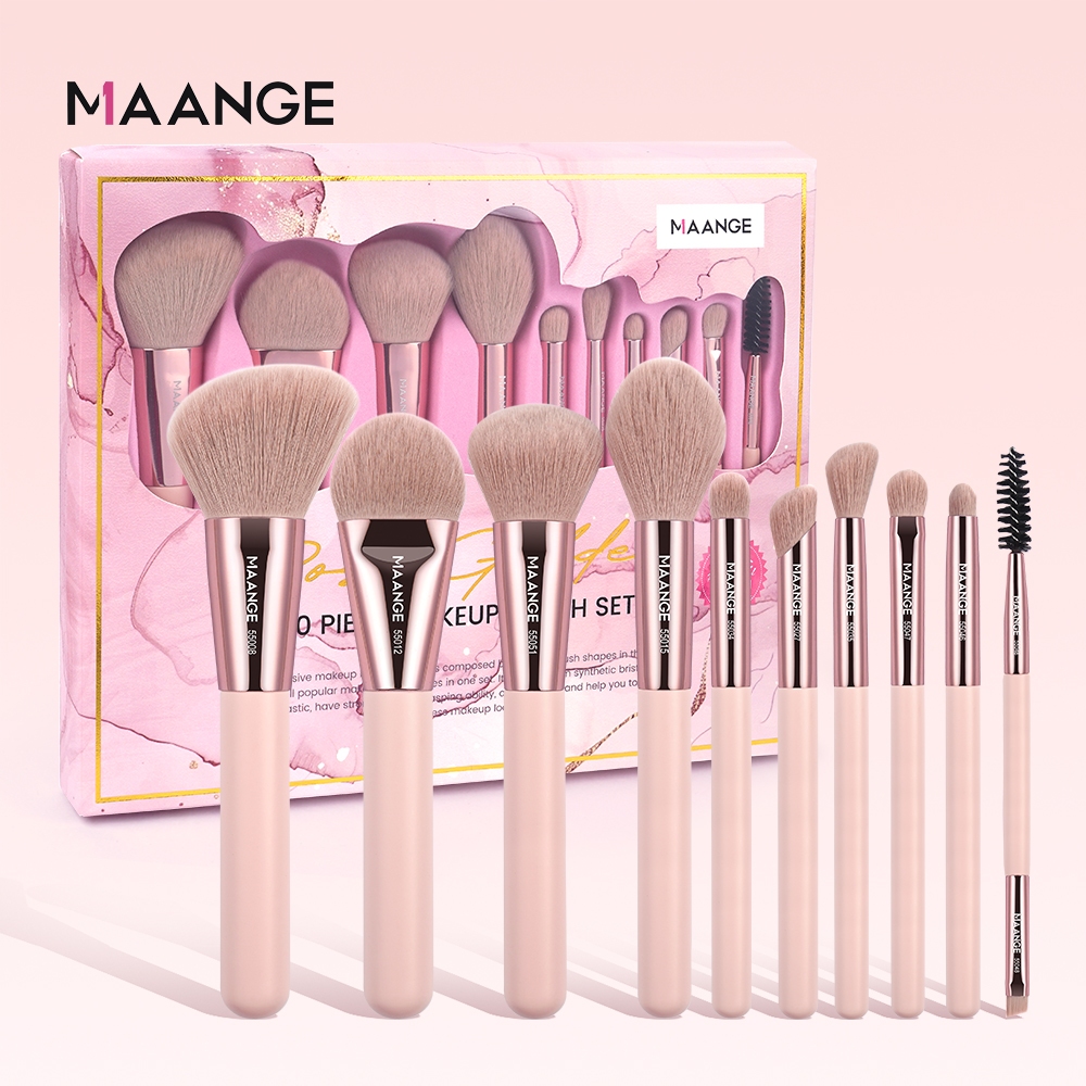MAANGEpinkiedition 10 pcs Set Kuas Rias Kualitas Tinggi Femininenergy Makeup Brushes Set Kotak Hadiah Prof