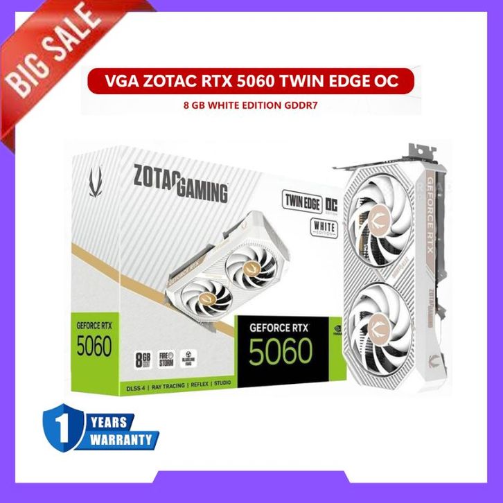 VGA ZOTAC RTX 5060 Twin Edge OC White 8GB GDDR7 – GPU Gaming Terbaru, Kuat & Hemat Daya