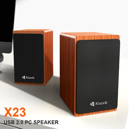 Speaker KISONLI X23 2.0 USB – Model Kayu, Suara Bass Jernih, Volume Control, Untuk Komputer & Laptop