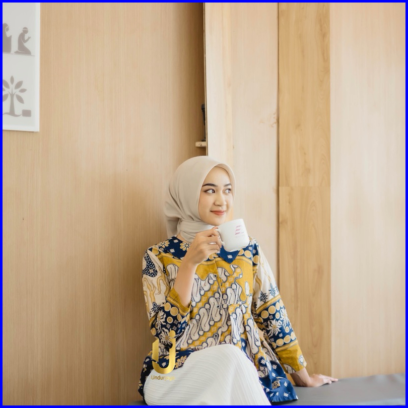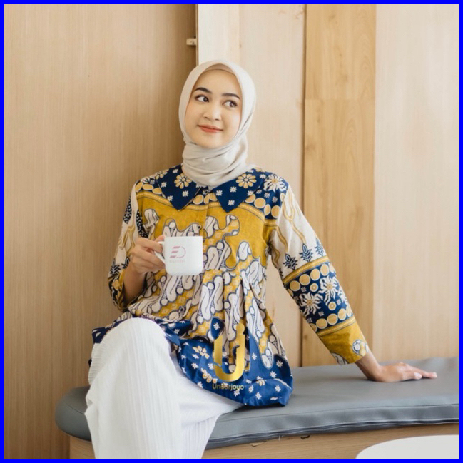 Undurjoyo - Baju Batik Wanita Lengan Panjang Blouse Daisy Mustard