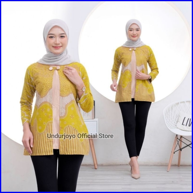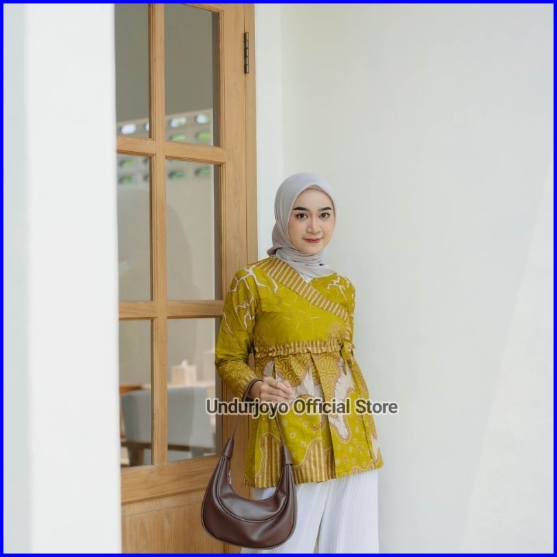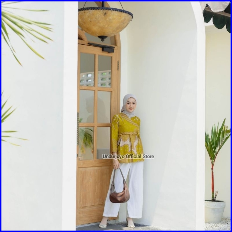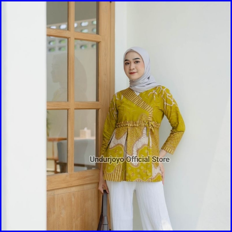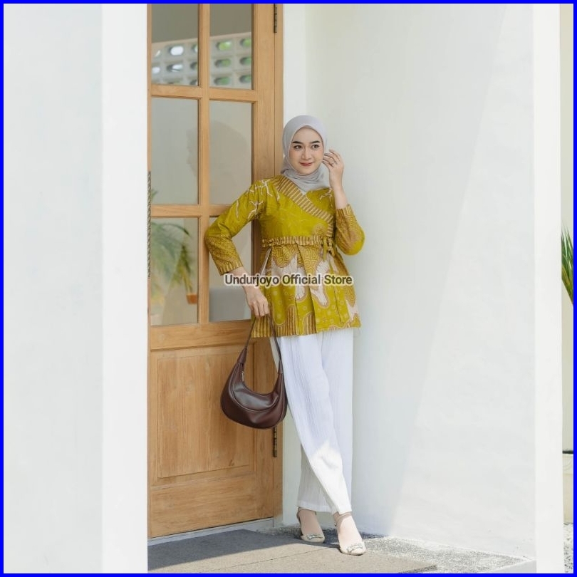 Undurjoyo - Blouse Ruffle Batik Wanita Akar Lime Series Baju Kerja Kantor Premium Modern