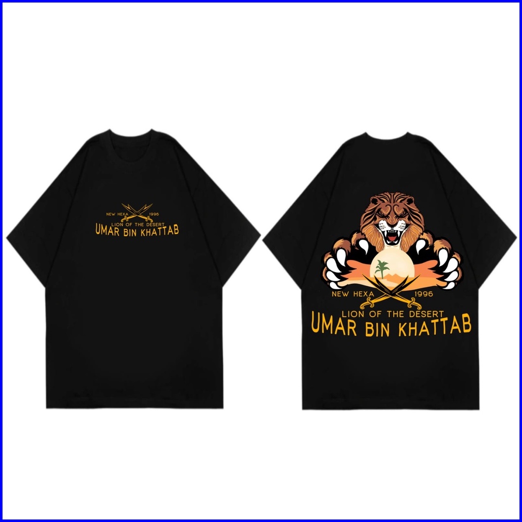 New Hexa Kaos T-shirt Pria Hitam 24s Umar Bin Khatab