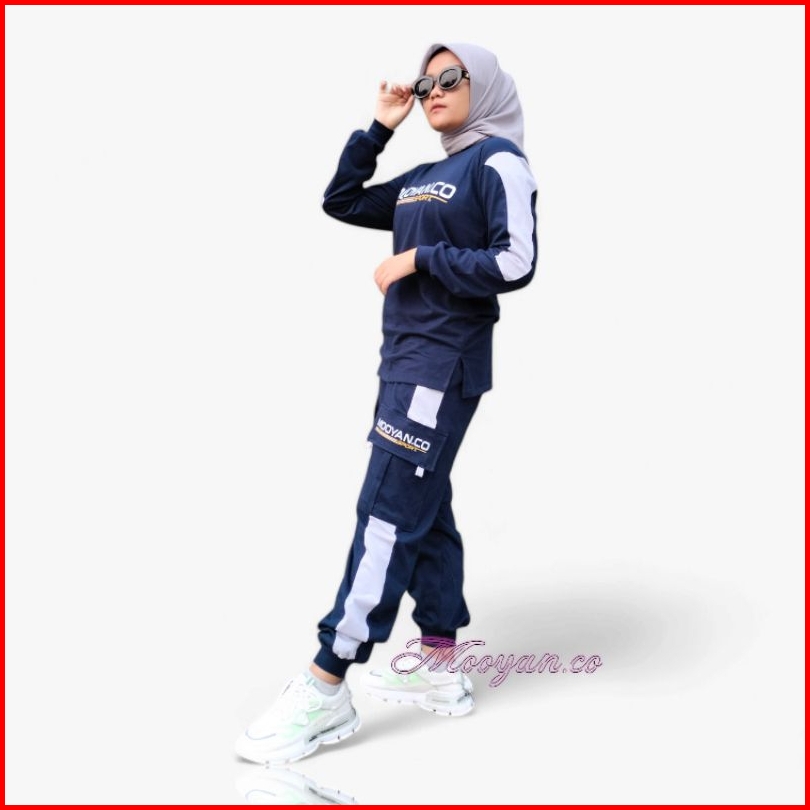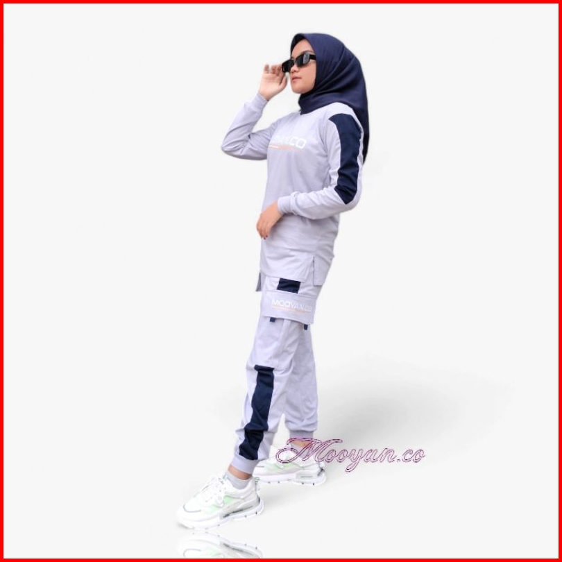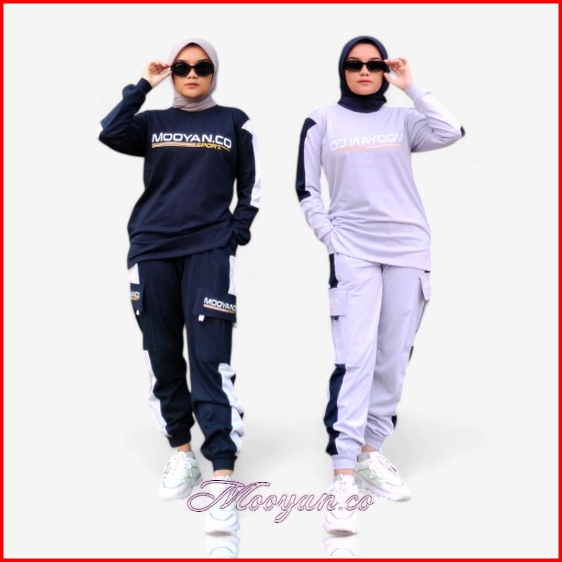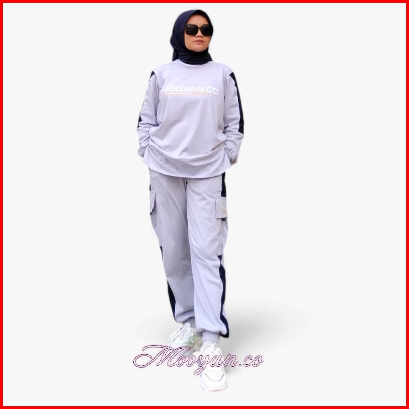 Setelan Olahraga Wanita Jumbo - Baju Olahraga Celana Cargo Wanita Muslimah - Mooyan Set 100kg