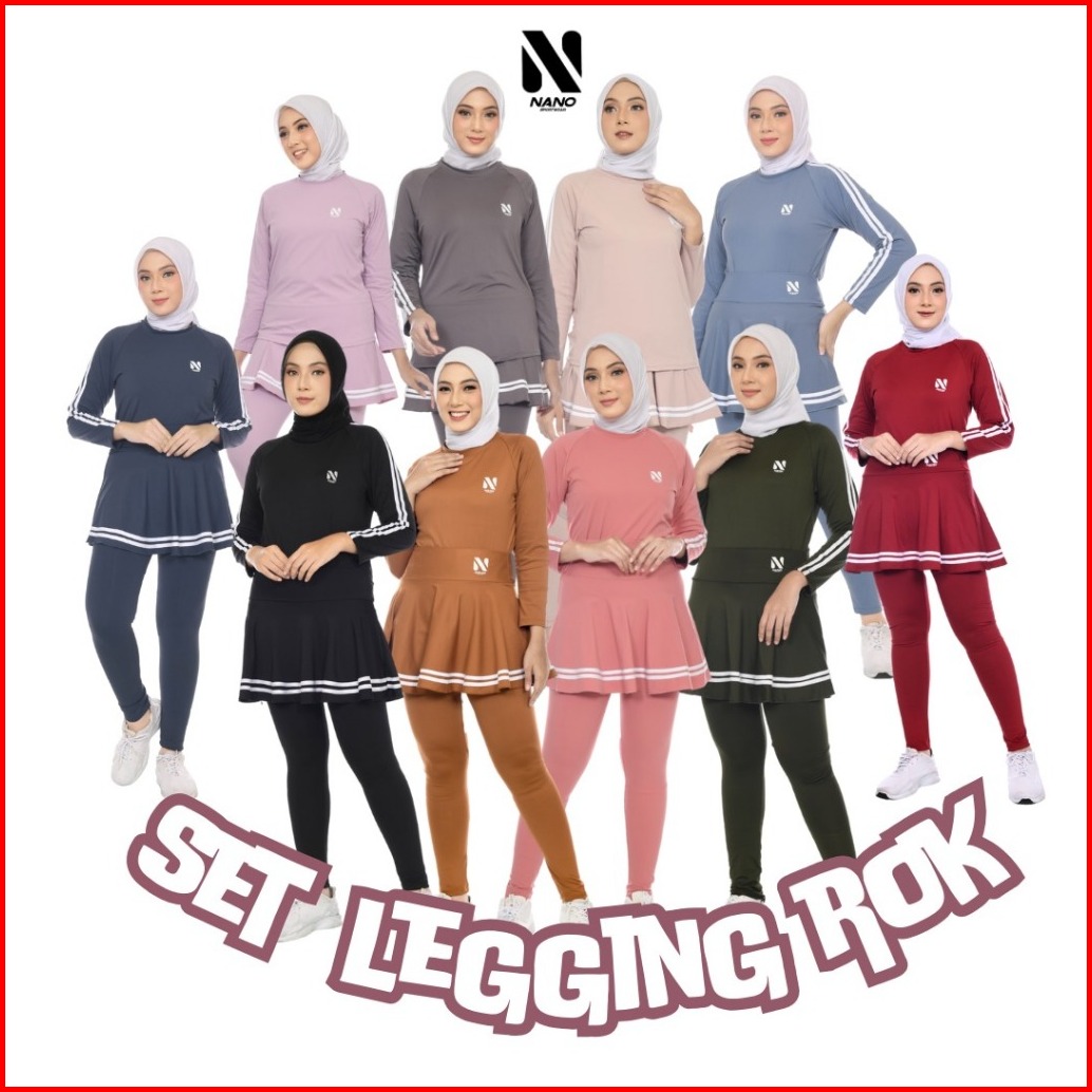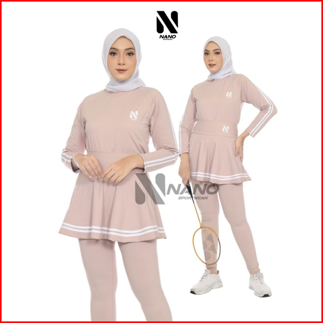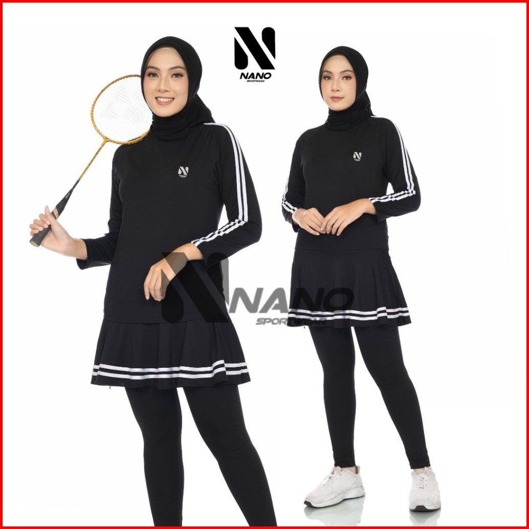 Nano Sport Baju Senam Wanita Setelan Olahraga Rok Legging Das