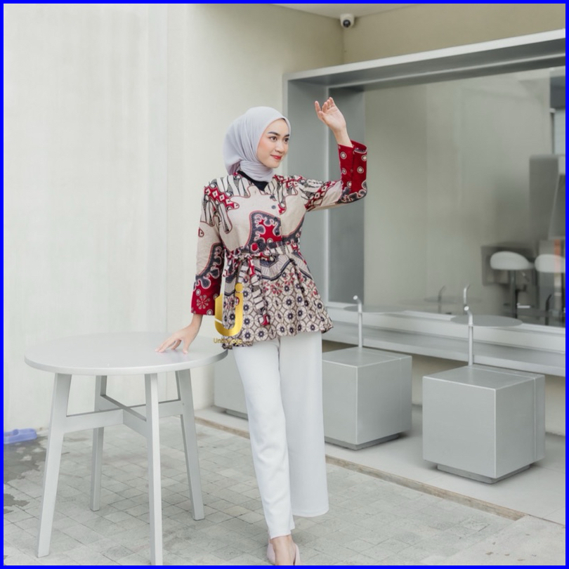 Undurjoyo - Baju Atasan Wanita Terbaru Motif Kawung Merah