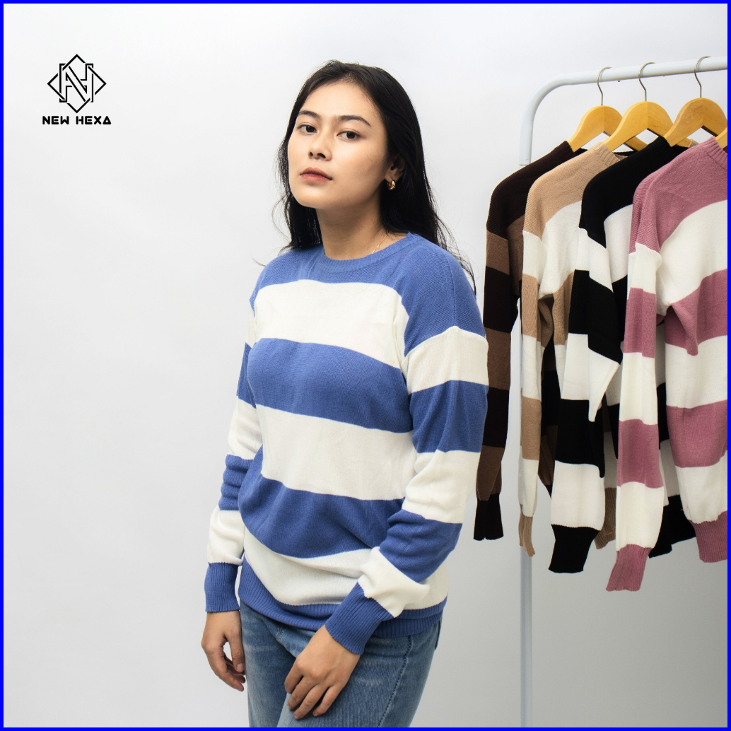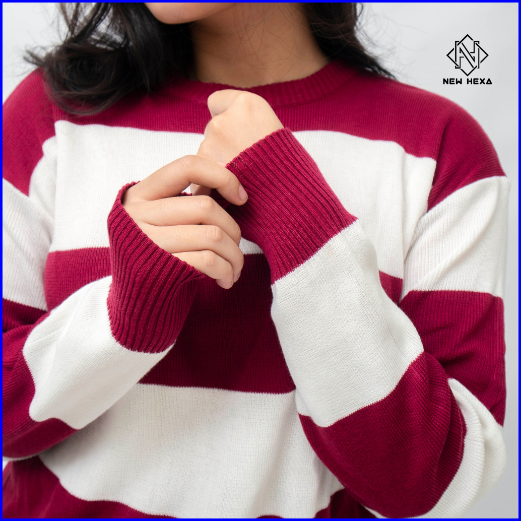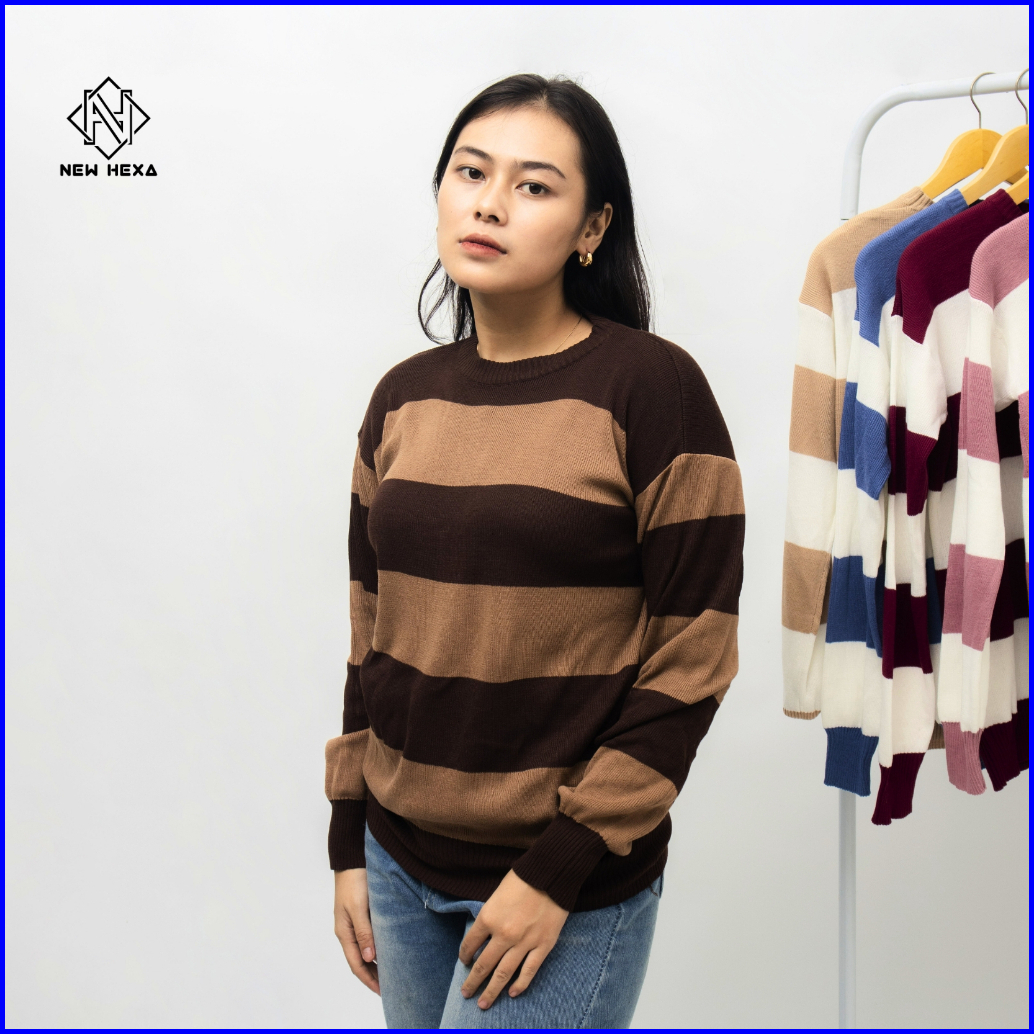 New Hexa Sweater Rajut Wanita Oversize Crewneck Atasan Knitte Bahan Katun