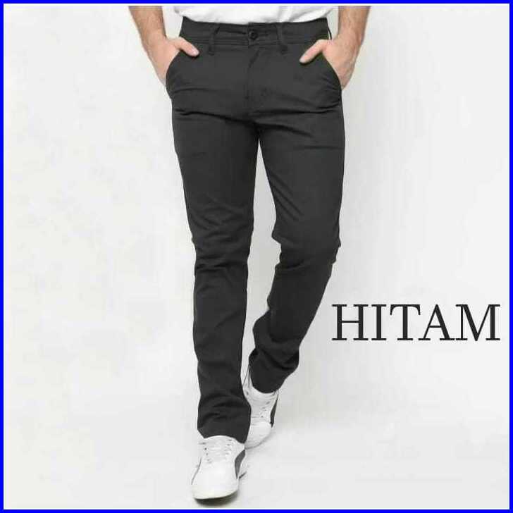 New Hexa Celana Chinos Panjang Hitam Pria Slimfit Cotton Twill Premium Strech