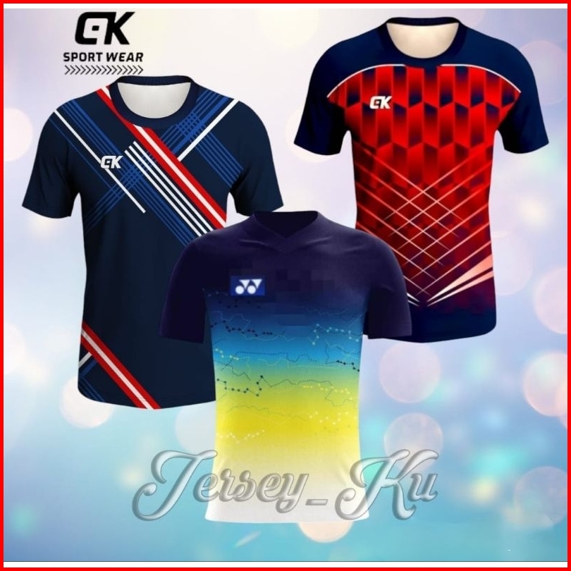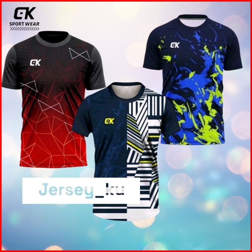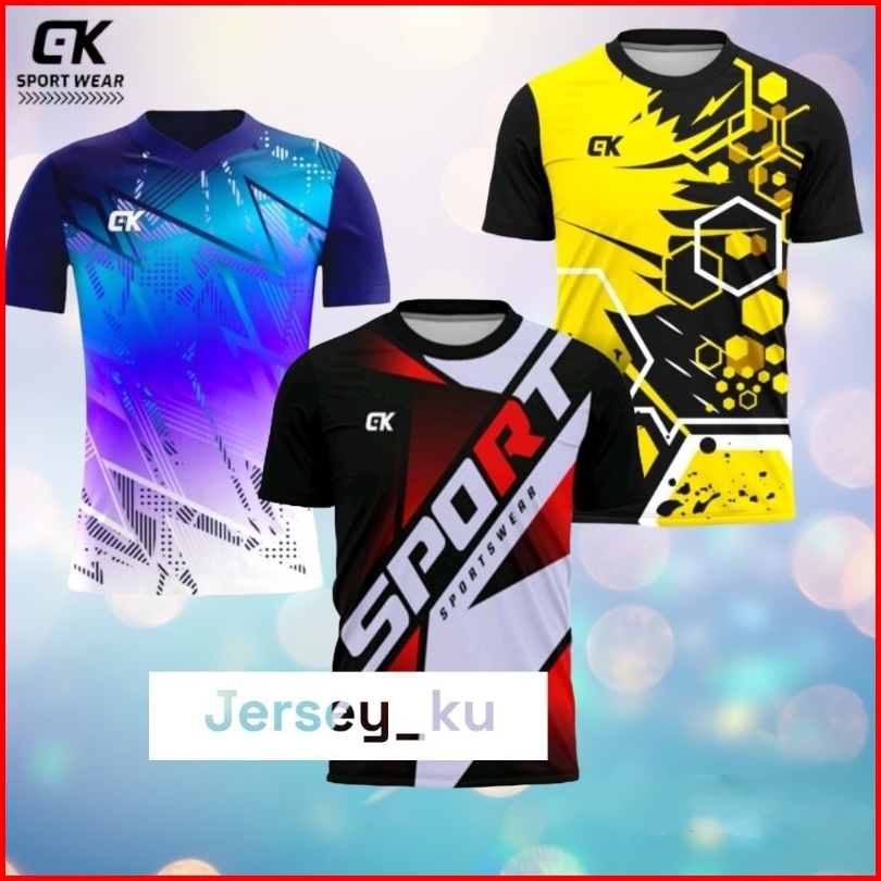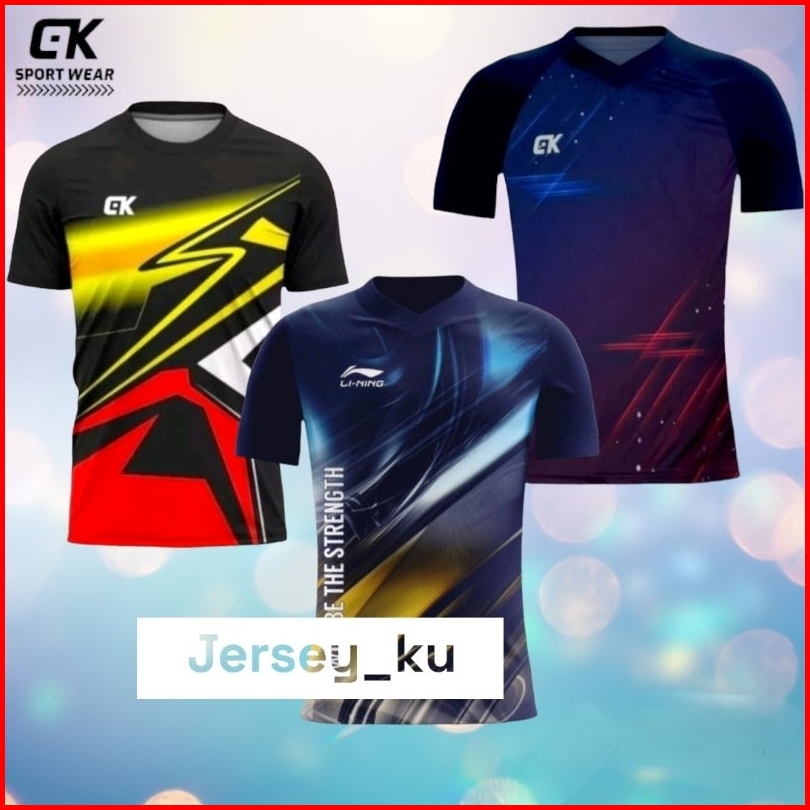 Paket 3 Pcs Baju Jersey Printing Kaos Olahraga Running Volly Badminton Terbaru