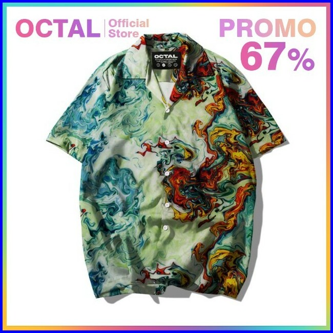 Octal - Kemeja Motif Pattern Pantai Printing Kasual Pria - Wanita Kmp-0113