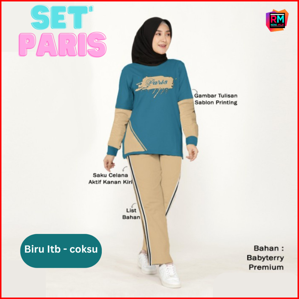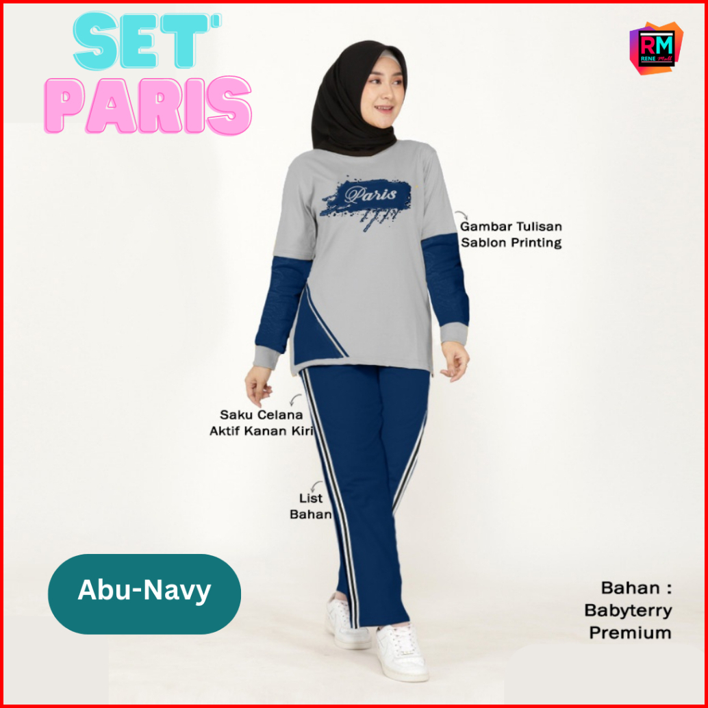 Set Paris Setelan Training Olahraga Wanita Muslimah Kaos Babyterry Adem Lengan Panjang Sablon Size Xl - 3x Adem