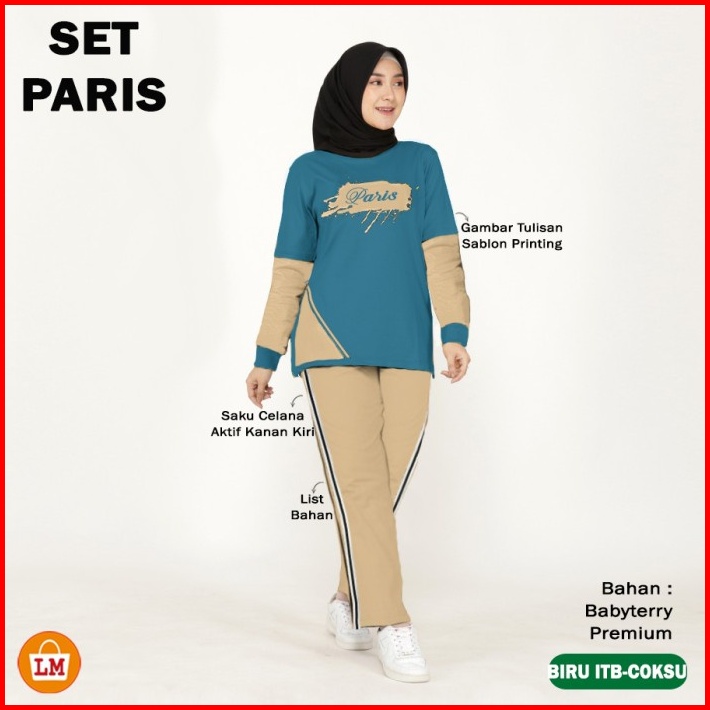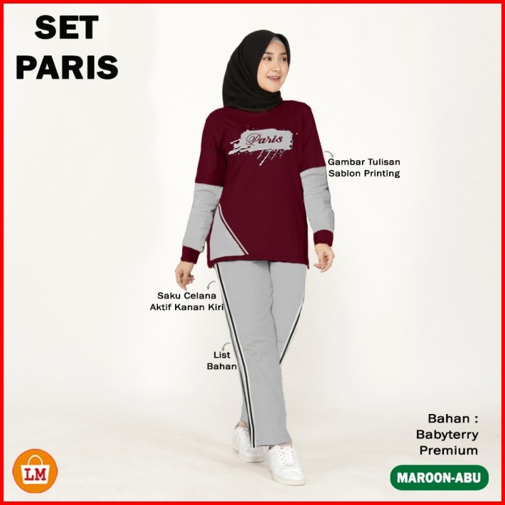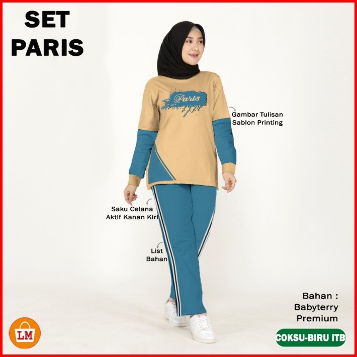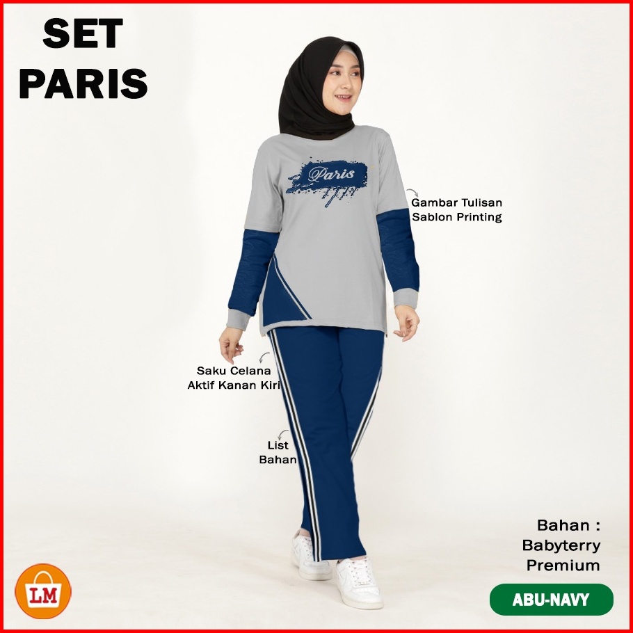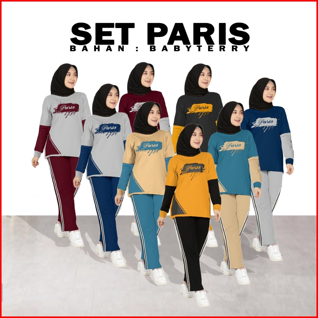 Set Paris Setelan Training Olahraga Wanita Muslimah Kaos Babyterry Adem Lengan Panjang Sablon Size Xl - Xxxl Lms 35670