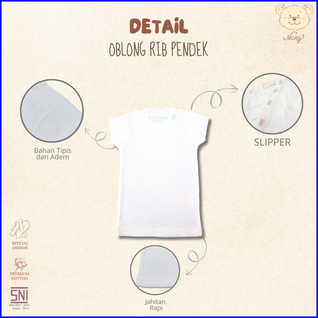 Nary White Series - Oblong Anak - Oblong Rib Pendek 1-4 Tahun 1 Pcs