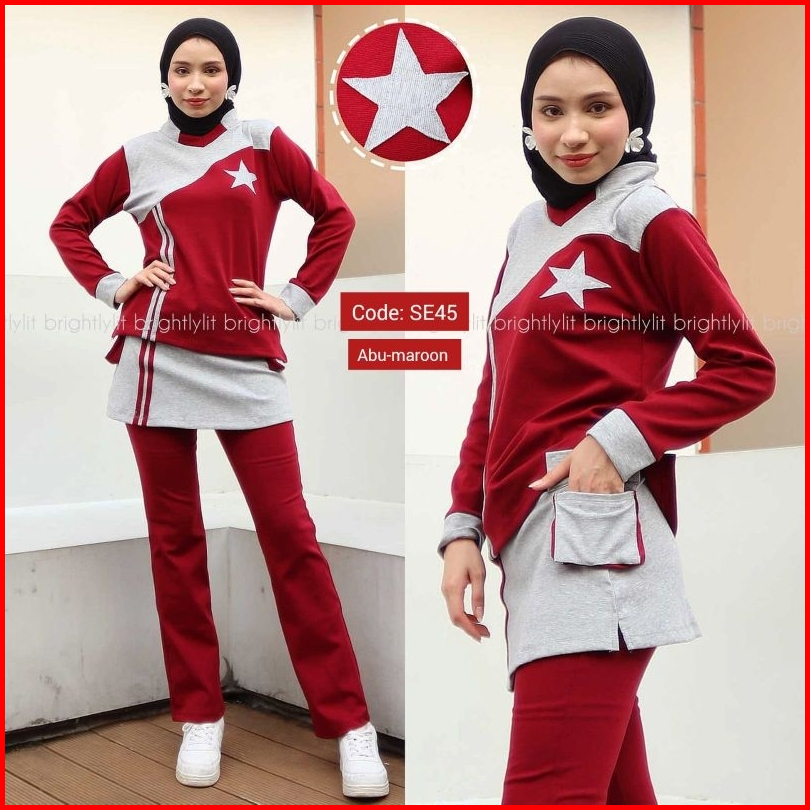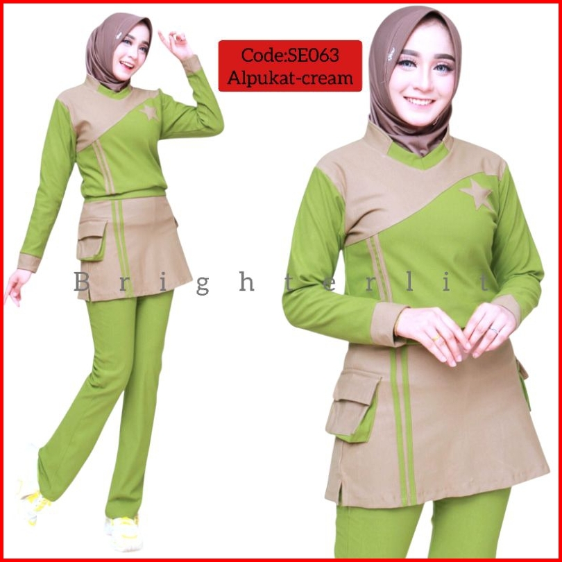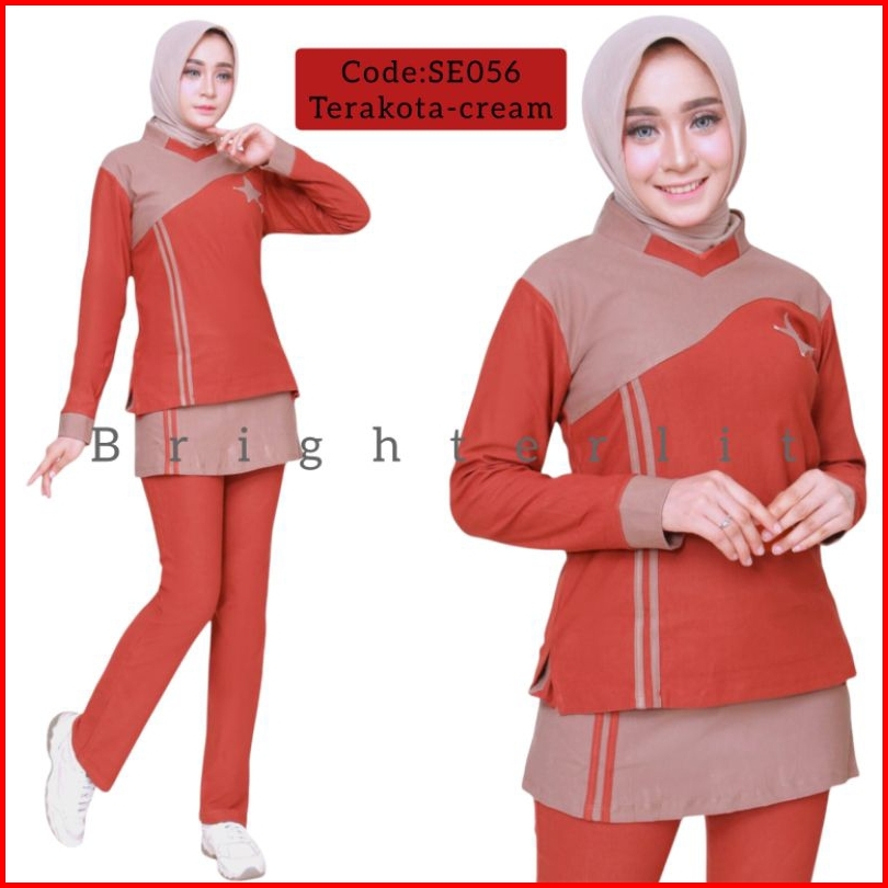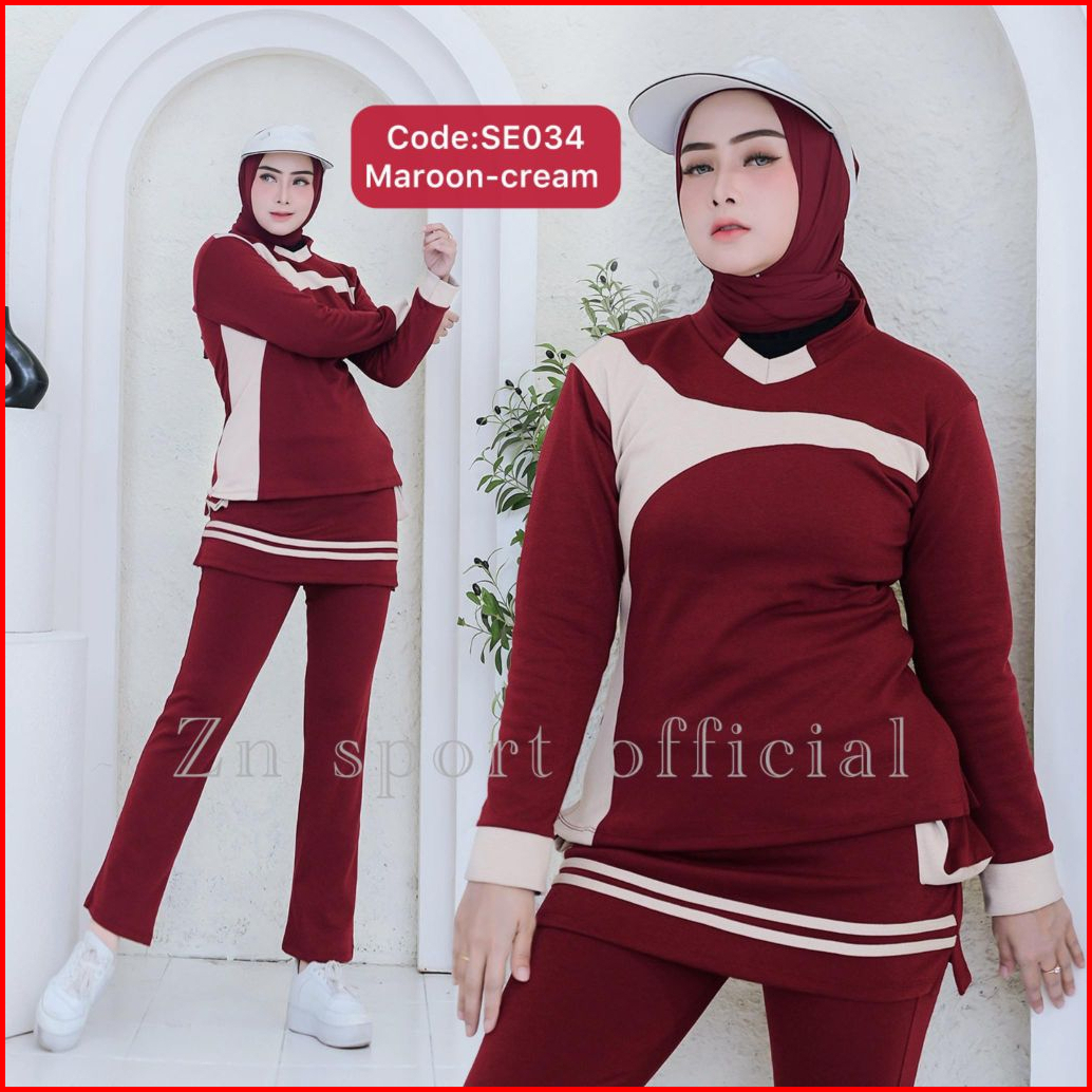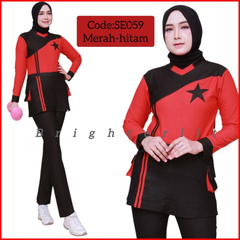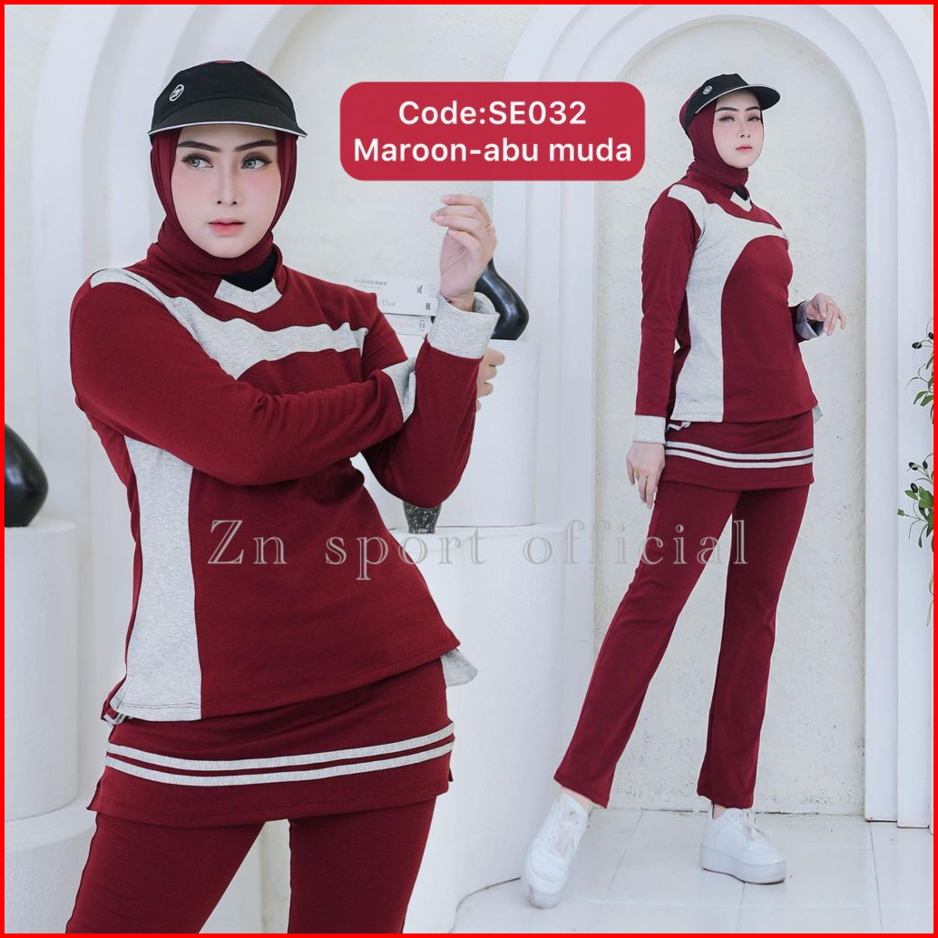 Setelan Olahraga Wanita Senam Dewasa Baju Olahraga Perempuan Celana Rok Senam Panjang Stelan Muslim Perempuan
